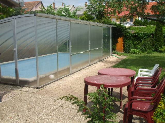 Megvételre kínálunk egy 5szobás részben felújított családi házat, ahol a hagyományos építés és a modern megoldások tökéletes összhangban találkoznak.Főbb Jellemzők:Masszív Szerkezet: Az eredeti házrész 50 cm vastag vértesszőlősi terméskő fala nyáron kellemesen hűs, télen pedig kiválóan tartja a meleget. Az újabb építésű rész B38-as téglából épült. Cserepes lemez tetővel és korszerű Kömmerling ablakokkal ellátva.Felújítás: A ház részleges felújítása 2016-ban megtörtént, melynek során a víz- és villanyhálózat cseréje az egész házban megtörtént, illetve az alsó szinten új hidegburkolatok kerültek és padlófűtés került kialakításra.Fűtés és Melegvíz: A fűtést és a meleg vizet is modern Vaillant gázkazán biztosítja, emellett a hangulatos melegről egy cserépkályha is gondoskodik. A melegvíz-ellátásban bojler is segíti.Kényelmi Extrák: A ház igazi gyöngyszeme a fűthető medence és a télikert, melyek egész évben garantálják a kikapcsolódást. Az emeleten 2 db LG légkondicionáló biztosítja a komfortot.Helyiségek Elosztása:Földszint: Tágas előszoba, étkező, konyha, nappali, hálószoba, WC és fürdőszoba.Emelet: 3 szoba, előszoba, valamint egy fürdő-WC. Az emelet kívülről és belülről is megközelíthető. A két lakrész megosztásának köszönhetően a rezsivédet Kert és Udvar: A telek rendezett, rajta 2 beállásos garázs (az udvaron) és egy tároló található. A kényelmes bejutást automata kovácsoltvas kapu biztosítja. Ezen felül egy kutyakenel is kialakításra került.Kerti vízellátás: A kert öntözésére és kerti csapra külön vízóra áll rendelkezésre, ezen kívül egy 30 méteres ásott kút is növeli az öntözés biztonságát.Ez az ingatlan ideális választás azok számára, akik tágas otthonra vágynak, illetve 2 generációs otthon szeretnének kialakítani.További információért várom hívását!