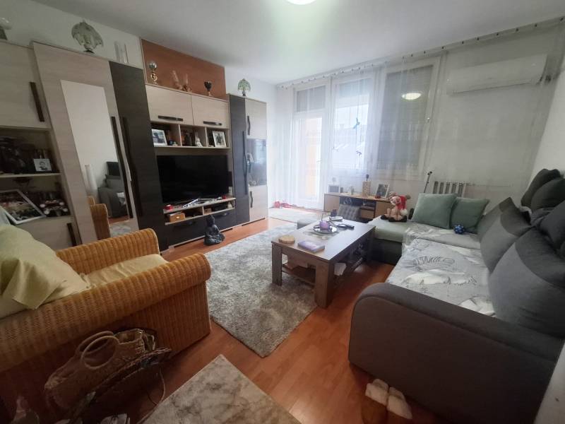 SZIGETSZENTMIKLÓSON A SZENT MIKLÓS ÚTI LAKÓTELEPEN VILÁGOS, 62 M2 ALAPTERÜLETŰ, KLIMATIZÁLT ERKÉLYES LAKÁS ELADÓ!Szigetszentmiklóson a Szent Miklós utcában, egy ötszintes panel házban, eladóvá vált, egy második emeleti, napfényes kelet-nyugat tájolású, 62 m2 lakóterületű, jó beosztású, 2 és fél szobás kényelmes lakás!A társasház melyben a lakás elhelyezkedik rendezett, jó lakó közösségnek örvend! A lakás teher mentes, jó vétel.A lakás nyílászárói fa szerkezetű thermo üvegezésűek.Fűtése, távfűtés radiátor hőleadókkal.Burkolatai a szobákban laminált parketta, konyhában és a fürdőszobában kerámia lap burkolat.Elosztása: közlekedő/előtér 6,91 m2, szoba 17,91 m2, szoba 11,61 m2, félszoba 6,21 m2 konyha 9,65 m2, fürdőszoba 2,79 m2, toalett 1 m2, közlekedő .1,79 m2, erkély 4 m2A beépített konyhabútor gépesítve, és a beépített bútorok a vételár részét képezik. A lakáshoz közös használatú tároló tartozik.Az erkélyről csodás kilátás nyílik a környező fák lombjaira.A közös költség 13600 ft mely tartalmazza a felújítási alapot, a lépcsőház takarítást, szemétszállítást.Az ingatlan közelében, bevásárlási lehetőségek és intézmények közül szinte minden 2-3 perc távolságban megtalálható, a közért, pékség, hentes, zöldséges, étterem, iskola, óvoda, posta, bank, orvosi rendelő, HÉV megálló, stb.Az agglomerációból könnyedén a fővárosba juthatunk, akár autóval (M0), akár tömegközlekedéssel (HÉV)FINANSZÍROZÁS:Nálunk mindent egy helyen intézhet:- hivatalos ingatlanközvetítés;- szakszerű jogi képviselet;- profi CSOK-PLUSZ, és hitelügyintézés: 16 Bank, több mint 100 konstrukció;VÁROM MEGTISZTELŐ HÍVÁSÁT!A részletes adatvédelmi tájékoztató folyamatosan elérhető a GDN weboldalán.