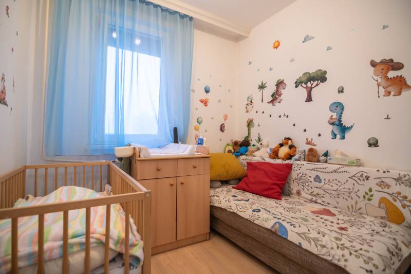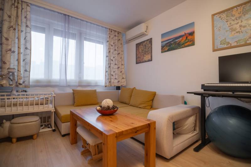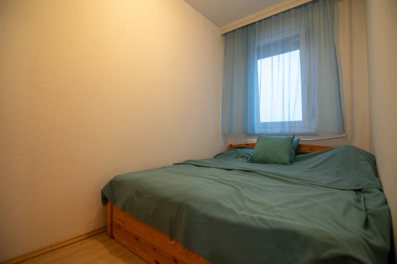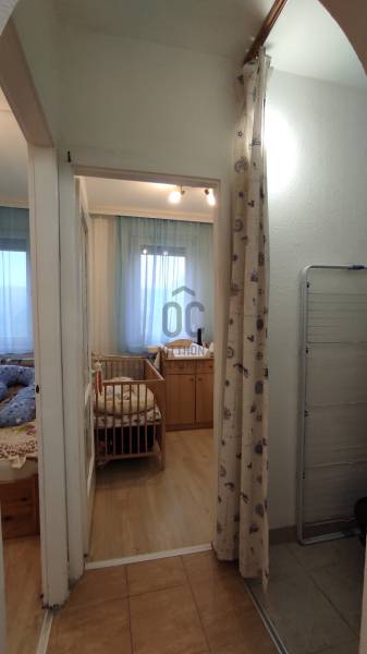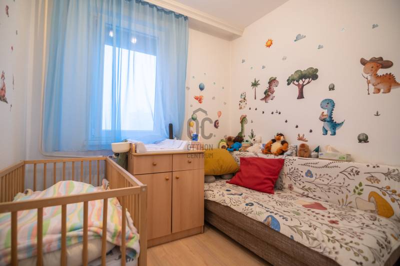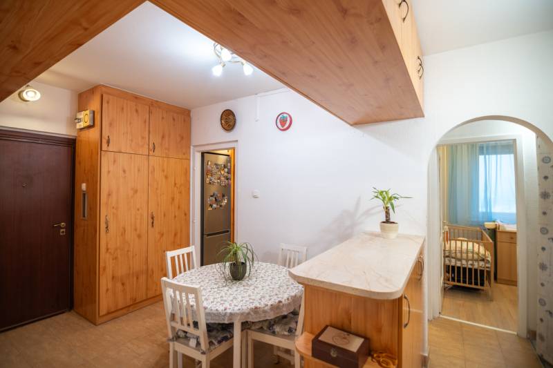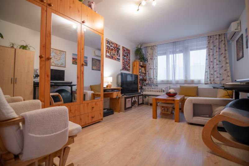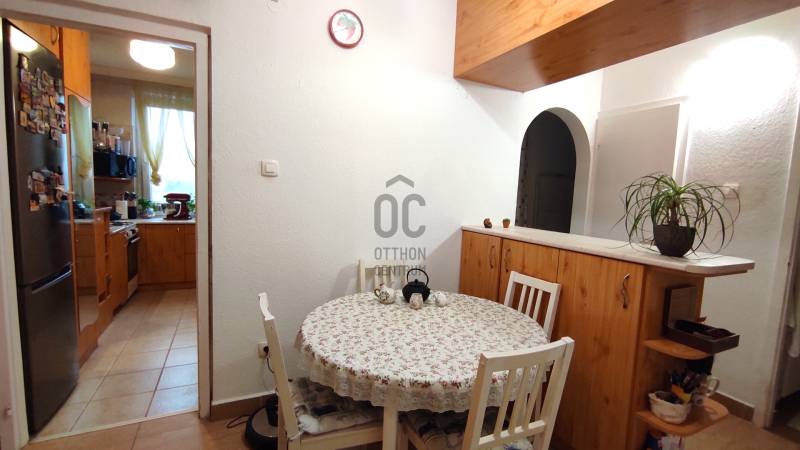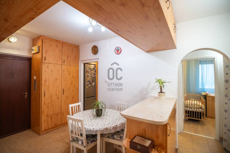 Békásmegyer Hegy-felöldi oldalán, a lakótelep szélén eladóvá vált egy jó adottságokkal rendelkező 3-szobás lakás.A LAKÁS az 5. emeleten van, - és mivel a lakótelep szélső épülete, É-felé szép kilátása van a budakalászi dombok felé. A D-i oldalon is parkra néz az ablak. É-D-i tájolásának köszönhetően kellemesen világos, D-i oldalról árad be a napfény. (Nem mellesleg jól átszellőztethető)ELRENDEZÉSE nagyon praktikus: ha belépünk egy tágas étkezőbe érkezünk, ahonnan valamennyi további helyiség nyílik. Kifejezetten nagy méretű nappalija kényelmesen berendezhető. A másik oldalon elhelyezett 2 hálószoba a fürdővel és a külön wc-vel jól elkülönül a nappali tartózkodási tértől, így a korábban pihenni vágyókat nem zavarja az esetleges hangos beszélgetés, TV-nézés...Konyhája világos, praktikus elrendezésű, sok pakolóhellyel.A lakásban sok praktikus beépített szekrény van, ami szintén része a vételárnak.MŰSZAKI ÁLLAPOTÁT tekintve az elmúlt 25 évben több felújítás is történt. Az elektromos vezetékek cserélve lettek, a konyha és fürdőszoba mintegy 8 éve lett újragondolva, burkolatok is akkor lettek cserélve.A műanyag nyílászárók redőnnyel és szúnyoghálóval vannak ellátva.FŰTÉSről távhő gondolskodik egyedi méréssel. De mivel nagyon meleg a lakás, jellemzően csupán a hideg téli hetekben kell bekapcsolni a radiátorokat. Ennek köszönhetően igen kellemes rezsi költségekkel lehet számolni.A hűtésről klímakészülék gondoskodik.Közös költség: 16.000,-FtLOKÁCIÓJA tökéletes. A lakótelepen 3-5 perc sétatávolságon belül van orvos, patika, bölcsi, ovi, suli, bevásárlási lehetőség.A 160-as busz szinte a ház előtt áll meg, a HÉV-megálló pedig 10 percen belüli sétatávolságban van.A lakás a START PLUSZ hitel felvételére is alkalmas, ideális választás fiatal párnak kisgyerekkel.