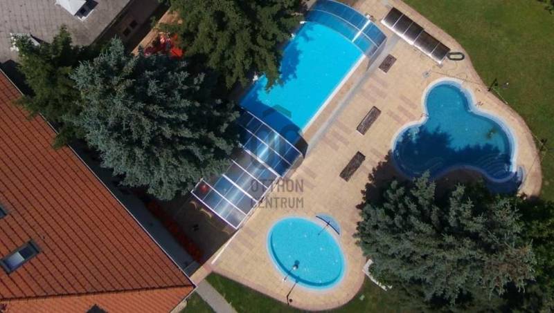 Kivételes adottságú, modern, energiahatékony wellness szálloda eladó, amely nemcsak turisztikai célra, hanem egészségügyi vagy rekreációs központként is kiválóan hasznosítható.Főbb adatok• Épület nettó területe: 2 155 m• Telek területe: 6 443 m²• 21 hotelszoba• Parkoló• Edzőterem, bankett-terem, étterem, bowling, wellness részleg, 4 medenceHelyiségkiosztás és funkciókSzálloda rész:•21 kényelmes, többségében akadálymentes szoba 3 szinten•Recepció, étterem, kávézó és hangulatos terasz a parkra néző kilátássalWellness részleg:•Fűtött úszómedence ellenáramoltatóval, élményelemekkel és fénytechnikával•Súlyfürdő medence, kültéri medencék, gyermekmedence élményelemekkel•Finn szaunák, gőzkabin, infraszauna, zuhanyzók•Masszázs részleg és orvosi szoba•Három kültéri medence: úszómedence, élménymedence, gyermekmedenceFitness és szabadidős rész:•Teljesen gépesített edzőterem•Aerobic és spinning terem•Kétsávos bowlingpálya külön bárral és hangtechnikával•Dupla squash pálya, hivatalos versenyek megrendezésére is alkalmas•Rendezvényterem saját hangtechnikával•Gyermek játszórész Helen Doron angol nyelvoktatással•4 pályás Bowling pálya saját bárralEnergetikai és műszaki jellemzők•Fűtés: 21 db geotermikus talajszonda + 2 db tartalék gázkazán•Mennyezeti hűtés-fűtés, padlófűtés a fitness részlegben•Radiátoros hőleadás a szállodarészben•Klímatizált helyiségek•Napelemrendszer (50 kWh)•Napkollektor rendszer a medencék fűtéséhez•Saját transzformátorállomásKültér és parkolás•60 férőhelyes, saját felszíni parkoló•Gondozott, parkosított környezet.Lehetséges hasznosítás•Magánkórház járó- és fekvőbeteg-ellátással•Rehabilitációs vagy egészségügyi központ•Céges üdülő, rekreációs központ•Rendezvény- vagy konferenciaközpont•Irodaház•Oktatási központ/iskola•Sportközpont•Strandfürdő•Étterem•Idősek otthona-További információkért keressen a hét bármely napján!(We speak English)