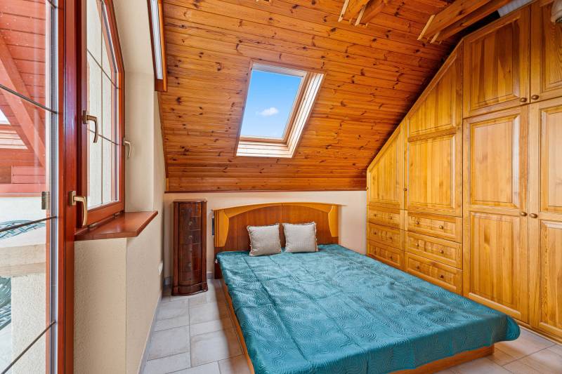 MINŐSÉG, TÉR, PANORÁMA - OTTHON, AMI VALÓDI ÉRTÉKET KÉPVISEL!Szentendre egyik legkedveltebb, családias hangulatú városrészén, Pismányban, a nyugodt és rendezett Körte utcában ELADÓ egy különleges, mediterrán hangulatú, 3 szintes, 184 nm hasznos alapterületű, remek elrendezésű és élhető terekkel rendelkező, nappali + 3 hálószobás, teraszos, panorámás csalási ház saját wellness részleggel, rengeteg extrával, 658 nm-es, összközműves telken!Az ingatlan könnyed eleganciával ötvözi a modern kényelmet, a funkcionalitást és a természet közelségét.A HÁZ ELRENDEZÉSEFöldszint (60 nm) - a mindennapok központja- Tágas előszoba 2 bejárattal, beépített szekrénnyel- Világos, amerikai konyhás nappali kandallóval, közvetlen teraszkapcsolattal- Komfortos kialakítású, tágas hálószoba- Sarokkáddal felszerelt fürdőszoba wc-vel- A nappali hatalmas üvegfelületei rengeteg természetes fényt árasztanak be, a tágas terasz pedig ideális helyszínt biztosít családi összejövetelekhez vagy kikapcsolódáshoz kellemes, zöld környezetben. Tetőtér (60 nm) - privát terek világa- 2 tágas, napfényes szoba saját terasszal, beépített szekrényekkel- Zuhanykabinnal felszerelt ablakos fürdőszoba wc-vel- Home office sarok csodás panorámával- A privát hangulatú szobák nyugalmat sugároznak, teraszukról pedig csodás panorámában gyönyörködhetnek az itt lakók.Alsó szint (60 nm)- Praktikus kamra- Gépészeti, háztartási helyiség - Infraszauna- Zuhanyzóval, wc-vel felszerelt fürdőszoba külön bejárattal a kertből- Hatalmas alapterületű többfunkciós helyiség ami tökéletes lehet konditeremnek, hobby- vagy játékszobának, rekreációs térnek vagy garázsnak .- Ez a szint hatalmas hozzáadott értéke a háznak, az aktív életmódot kedvelők számára kiváló lehetőség.EXTRÁK ÉS KÜLÖNLEGESSÉGEK- Központi porszívó- Klímaberendezések- Riasztórendszer- Működő kandalló- Automata öntözőrendszer a kert teljes területén- Infraszauna, mely az otthoni wellness élményét hivatott megteremteni- Panorámás teraszok és erkélyek , gyönyörű kilátással Pismány dombjaira - tavasztól őszig a ház valódi életterei- Mediterrán hangulatú, gondozott kert oszlopsorral, természetes kőburkolattal, dísznövényekkel és örökzöldekkel- Parkolási lehetőség 5 autó számáraMŰSZAKI FELSZERELTSÉG - Kényelmes és takarékos üzemeltetésA ház kialakításánál fontos szempont volt a minőség és megbízható működés.- Tégla építés (2003)- 15 cm-es hőszigetelés- Gázkazán padlófűtéssel- 2 rétegű hő és hangszigetelt fa nyílászárók- Spaletták- Minőségi hideg- és melegburkolatok- Korszerű épületgépészet és megbízható műszaki állapot- Kedvező fenntartási költségekKÖRNYÉKA Körte utca Pismány egyik legcsendesebb, legbiztonságosabb részén található, ahonnan mindössze 5 perc alatt elérhető autóval Szentendre belvárosa. A környéken minden megtalálható, ami a hétköznapokban szükséges.- Boltok, bevásárlási lehetőségek- Óvodák, Iskolák- Éttermek, kávézók- Buszmegálló- Sportolási, szabadidős lehetőségekEz az ingatlan tökéletes választás:- Nagyobb családoknak, akik több, kényelmes, szeparált szintet szeretnének- Otthonról dolgozóknak, akiknek fontos a csend és nyugalom a home office-hoz- Akik kedvelik a privát élettereket, teraszokat és panorámát- Sportos, aktív életmódot kedvelőknek - edzőteremnek alkalmas tér adott- Igényes vevőknek, akik minőségi, jól felszerelt , gondozott házat keresnekTovábbi információkért és megtekintési szándékkal kapcsolatban várom hívását!