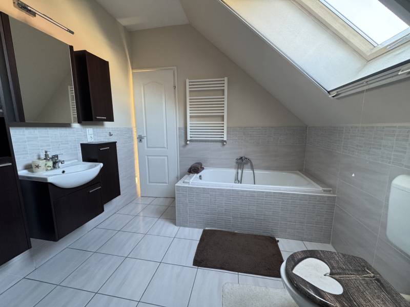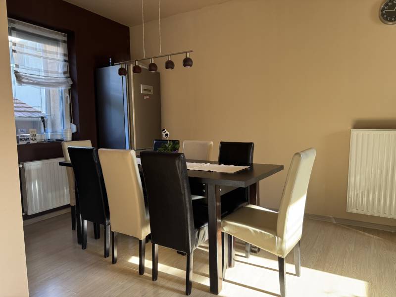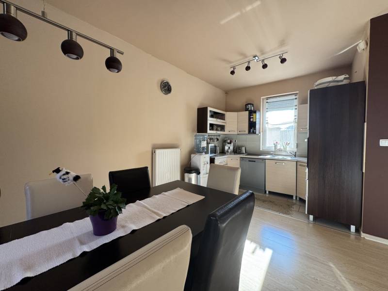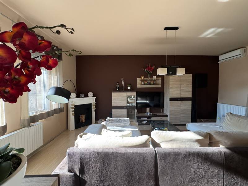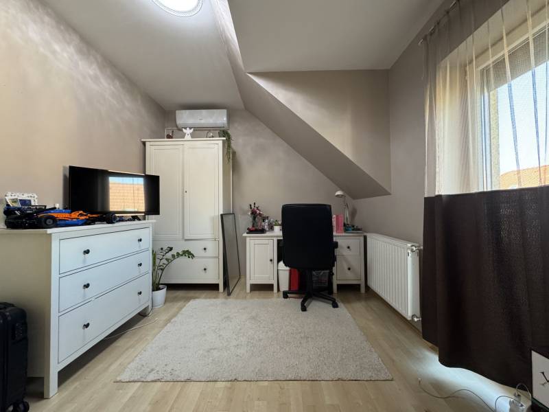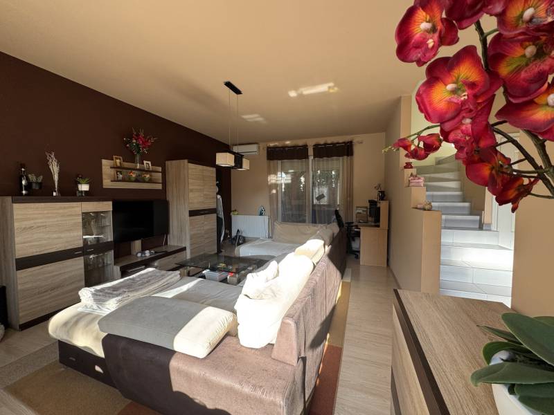 Fót az északi agglomeráció dinamikusan fejlődő városa, történelmi múlttal és ehhez méltó csodálatos kultúrkörrel rendelkezik a Fővárostól egy karnyújtásnyira.Gyönyörűen gondozott köztereivel, nívós intézményeivel, zöld határaival és remek infrastruktúrájával méltán vált a kiköltöző Családok dobogós választásává az elmúlt években.Itt, csendes utca végében került eladósorba egy kiváló adottságú IKERHÁZ.Szélső, sarki épület, így abszolút szeparált, intim kerttel rendelkezik, mely éppen akkora hogy gondozása nem teher és tökéletesen helyet adhat családi BBQ partyknak, létesíthető benne gyermekjátszótér, grillterasz és így is marad hely autóbeállásra valamint a konyhakertnek.Fiatal építésű, ehhez mérten korszerű, dryvit palástba bújtatott homlokzat, gondosan szigetelt födém és tetősík, műanyagtokos thermoüveges nyílászárók és kondenzációs gázkazánról biztosított fűtés. A nyári hőszabályozást klímaegységek segítik, a kerti tárolásra pedig faházikó áll rendelkezésre.2 szinten bruttó 100m2-el gazdálkodik, melyben optimális elrendezés valósult meg:Földszinten kényelmes előszoba, világos, nagy, teraszkapcsolatos nappali, tágas étkező-konyha, lépcső alatti mosókonyha wc-vel valamint a nagy fedett terasz kaptak helyet. Emeleti szinten 3 hálószoba, közlekedő és nagy fürdőszoba alkotják a helyiséglistát. A szobák saját franciaerkéllyel rendelkeznek, a tetőteres kialakítás ellenére jól bútorozhatóak, és kellemes világos életteret biztosítanak Lakóiknak. A fürdőszoba nagy, káddal és zuhanykabinnal is ellátott.Optimális, elrendezés, kényelmes tér, igényes kialakítás!Tökéletes választás azoknak, akik Budapestről kiköltözve vágynak a kertre, akik családalapítás céljából keresgélik új Otthonukat és olyan környezetben képzelik el a jövőjüket ahonnan a közlekedés megoldott, a szomszédság rendezett, a ház pedig fiatalos és nem kell hozzányúlni még jó pár évig!Jöjjön el, tekintse meg, FRISSEN VAN PIACON és biztos hogy nem sokáig!-alaprajz feltöltése folyamatban-