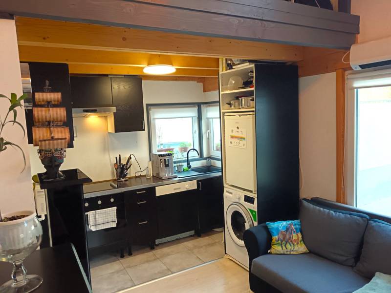 Ráckevén pici de kompakt, 2022-ben épített, könnyűszerkezetes, 19 m2-es alapterületű + 9,5 m2-es galériás kis ház, kerül most értékesítésre.Főbb jellemzői: - 255m2-es (17x15 m) telek- 22 m2 terasz- 25 m2-es garázs elektromos kapunyitóval- hűtést- fűtést egy 3,5kW-s, Gree klíma biztosítja- melegvízet 80L-es, Ariston villanybojler adja- kiépített kamerarendszer és kerti világítás- gépesített konyhabútor, IKEA kerámialapos főzőlap, elektromos sütő, 12 személyes mosogatógép, szagelszívó- Intenet optikai kábellel bevezetve (Telekom)- épület legkisebb belmagassága 3,87m, a legmagasabb pontja 4,22m- galéria 1.81-2.19 m belmagasságú - minimális fenntartási költség (15 cm dryvit szigetelés)- víz, csatorna, villany közművekre rákötve, gáz nincs bevezetveBuszmegálló Ráckeve központ és H6-os hévvégállomás felé 400 m-re.További információért kérem keressen!