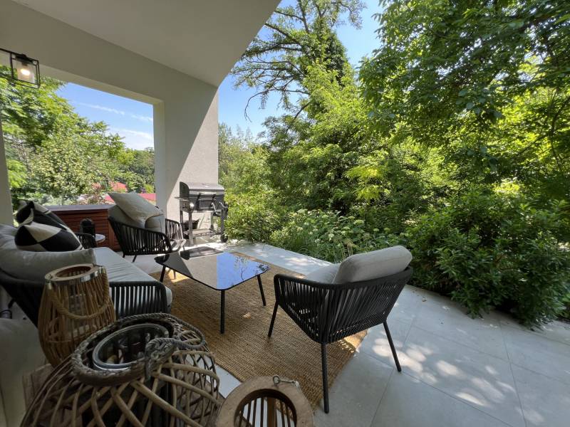 VARÁZSLATOS ZÖLD KÖRNYEZET, EGYEDÜLÁLLÓ STÍLUS és a BALATONI ÉLET hármasa találkozik ebben a páratlan ingatlanban.Balatonföldvár legszebb részen, az erdővel körülölelt Karika völgyben, saját részre építetett, exkluzív adottságokkal rendelkező, kiváló minőségi alapanyagokból, bútorokkal berendezett, napfényes családi ház/nyaraló keresi új gazdáját!A 2020-ban épült ingatlan, egy gyönyörűen parkosított 890 nm-es telken fekszik.Hasznos alapterülete 83 nm, melyhez egy 19 nm-es déli tájolású fedett terasz csatlakozik.Jellemzői:*3 hálószóba, konyha-étkező-nappali, fürdőszoba, WC, terasz*Porotherm 30K klímatégla*nyílászárók nagy keménységű trópusi fából, alumínium redőnnyel és szúnyoghálóval*egyedi fa beltéri ajtók, tolóajtó*Varilight réz villanykapcsolók*CLIFF konyhabútor*Beépített konyhai gépek (mosogatógép, sütő, mikrohullámú sütő, hűtőszekrény, páraelszívó)*egyedi stílusú gránit mosogató*bioetanol kandallóA ház klímájáról padlófűtés (cirkó gázkazán) valamint hűtő-fűtő klíma gondoskodik.A magas minőségű szigetelésnek köszönhetően, a nagy belmagasság ellenére, nagyon alacsony a fűtési költség.A ház egészéről a teljes műszaki dokumentáció rendelkezésre áll.Ne hagyja ki ezt a páratlan ingatlant!Bővebb felvilágosításért várom megtisztelő hívását!