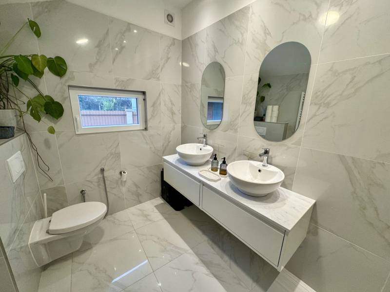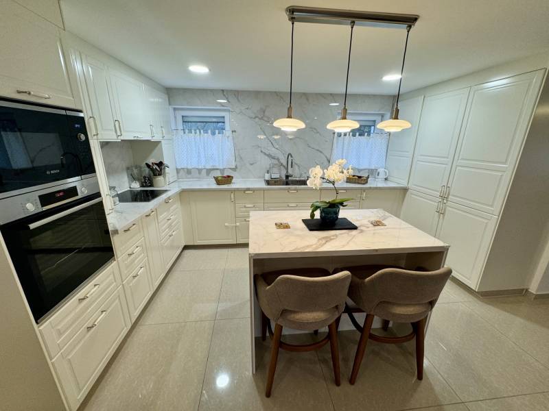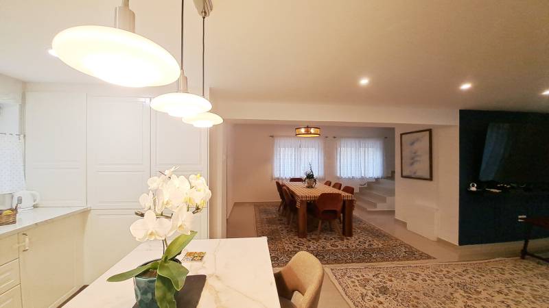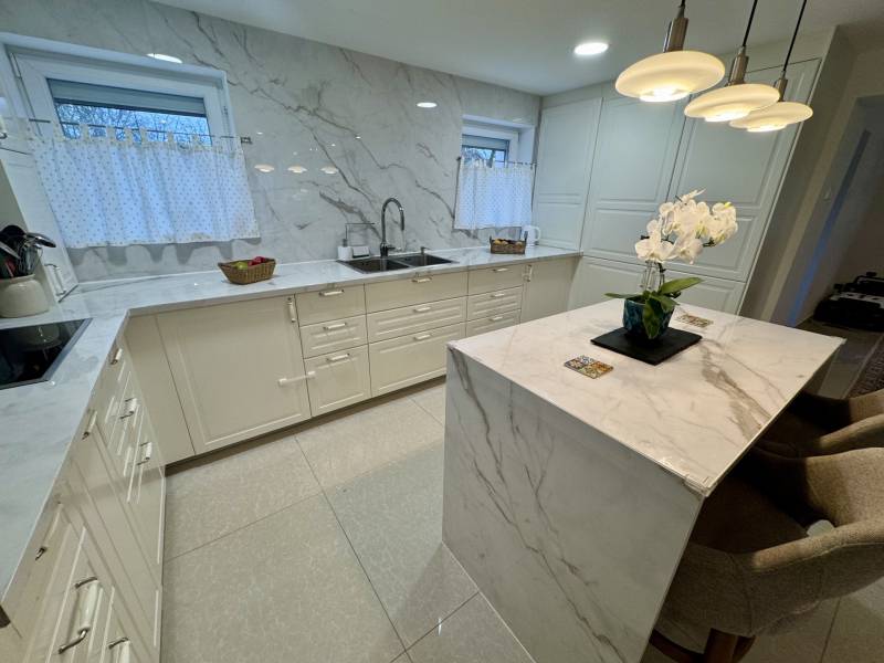 Százhalombatta legszebb részén, az Óvárosban helyezkedik el ez a kiváló adottságokkal rendelkező családi ház. 1994-ben épült és 2024-25-ben lett teljeskörűen, különleges módon és minőségben felújítva. Szeretettel, körültekintően, magas igények szerint lett kialakítva.- 1/1 tulajdonban van- beépített bútorok és garancia alatt álló BOSCH gépek az árban- a többi bútor és gép megbeszélés tárgyát képezi- délkeleti tájolása miatt mindig kellemesen süt be a nap- mozgásérzékelő, riasztó, távfelügyeleti rendszer, 2db 360 fokos kamera mobilapplikációval- műanyag nyílászárók, jó szigetelés és biztonsági bejárati ajtó- a felső emeleti szobából DUNAI PANORÁMA- KERTÉPITÉSZET, -DESIGN, LAKBERENDEZÉS- intimszféra garantáltBuszmegálló kettő is a közelben, közel a vasútállomás és Budapest is fél órán belül elérhető.Ajánlom pároknak, kis- és nagycsaládosoknak.Várom megkeresését!Amennyiben további részletekre kíváncsi:Az első benyomás már a bejáratnál és a gondosan kialakított kertnél magával ragad.Színvilág nem a véletlen műve, tökéletes harmoniában van egymással, akár a feng-shui alapján:A ház, a kerítés, a belső terek színvilága professzionálisan lett tervezve, minden árnyalat tökéletes harmóniában van egymással, a belső berendezést pedig lakberendező készítette.Kert - design garden: 10-12db gyümölcsfacsemete lett elültetve (1 édes alma, 1 savanyú alma, 1 szilva, 1 cseresznye, 1 meggy, 1 körte, 1 barack, 1 mandula, 1 gránátalma, 1 füge stb.). Úgy lettek elültetve, hogy egymás után virágozzanak, így a termésük is folyamatosan, tavasztól késő őszig érkezik (májustól október végéig). A kert teljes mértékben kertész által tervezett és kivitelezett, magas dizájnban kialakított, igazi oázis. Kiemelkedően figyeltek az intimszférára: kb. 20 örökzöld, leyland ciprusok garantálják a privát hangulatot. A kerítésnél babérmeggy sor húzódik, rózsák futnak fel az apácarácsokon, körbe levendula fut és kecskerágók is vannak közöttük. Télen is az örökzöld növények miatt garantált az intimszféra. A gyep a legjobb minőségű sportfűből készült, tartós és strapabíró, a talaj termőréteggel lett feltöltve, hogy minden növény egészségesen fejlődhessen. A kert egyszerre esztétikus, praktikus és teljesen zárt, így maximális intimitást biztosít.Úgy lett kialakítva a kert, hogy a fent említett dísznövények és gyümölcsfák körbeveszik a kerítést, így 200m2 füvesített rész van a kert közepén, így medence, sütögető vagy más szabadidős lehetőségek is könnyen elférnek. Az egyik oldalon vadonatúj drótkerítés is van. Díszkút az udvarban, kiépített öntözőrendszerrel.Közművek és rezsi:Két vízóra van, az egyik a kerti locsoláshoz a pincében, a másik a normál fogyasztásra az aknában. A gázóra kint van a ház elején, a csatornánál átemelő segíti a lejtés miatt a vízemelést. A villanyvezetékek vadonatújak. Az álmennyezet a dizájnnak megfelelően spotlámpákkal van ellátva. Kiváló szigetelés, a rezsi szinte elhanyagolható! A cirkó gázkazán vadonatúj (BOSCH), engedélyezési dokumentummal együtt. Lent padlófűtés van, fent radiátorok. Emeletenként 1-1 inverteres klíma (MIDEA, prémiummárka), egy másik szobában ki van építve, ha igénye lenne rá.Bejárat:Az elektromos autóbejáró és a modern, fémből készült kerítés fa design elemekkel már a megérkezés pillanatában minőséget és letisztult eleganciát sugall. A kinti világítás kapcsolóval működik. Díszkővel van körberakva a ház, ami alatt geotextilia van és szegővel van lezárva. A csőrendszer elnyeli az esővizet. Pince:Ritkaság, hogy egy ház alatt pince található: itt egy tágas 25,25m2-es pince van, 5cm aljzatbetonnal és szellőzőrendszerrel a nedvesség ellen.Környék:Az ingatlan Százhalombatta legértékesebb részén, az exkluzív Óvárosban található, egy csendes zsákutcában, ahol nincs átjáróforgalom. A környék a város legnyugodtabb, legbiztonságosabb övezete, valódi békét és kivételes életminőséget kínál.Városunk:Százhalombatta Budapest közvetlen vonzáskörzetének egyik legkulturáltabb és legdinamikusabban fejlődő kisvárosa. A Duna-part nyugalma, a gondosan karbantartott zöldterületek és a modern városi infrastruktúra együtt teremtenek kimagasló életminőséget.A város kiemelkedően jó közlekedési kapcsolatokkal rendelkezik, így a főváros mindössze percekre van, miközben a környezet megőrzi a prémium, csendes, kertvárosi hangulatot.Minőségi oktatási intézmények, sport- és wellnesslehetőségek, valamint gazdag kulturális programkínálat teszik vonzóvá a tudatos ingatlanvásárlók és befektetők számára.Százhalombatta mára egy olyan város, ahol a kényelem, biztonság és értékállóság találkozik - tökéletes választás igényes otthonkeresők számára.Jelentkezzen! :)