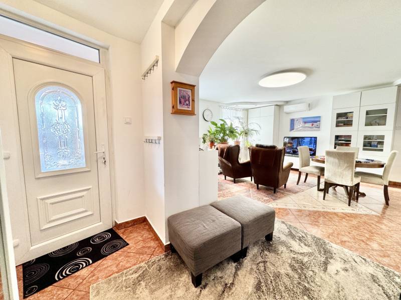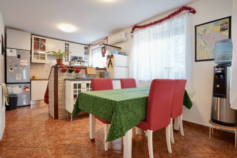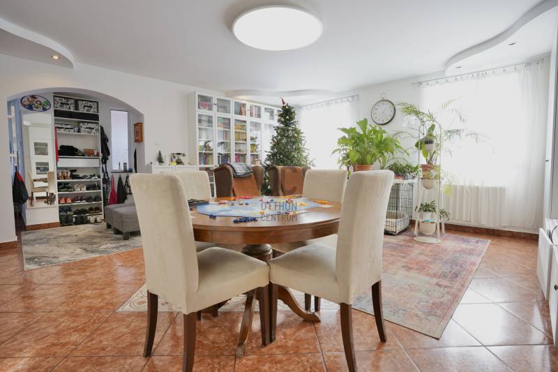 Családbarát, felújított otthon Vácon – nyugalom, tér és modern komfort egy helyenVác csendes, kertvárosi környezetében eladó egy világos, tágas, igényesen felújított családi ház, amely ideális választás gyermekes családok számára, mindössze 20 percre Budapesttől. Az amerikai konyhás nappalival és négy különálló hálószobával kialakított ingatlan kiváló térszervezésének köszönhetően hosszú távon is kényelmes otthont biztosít, akár több generáció együttélésére is.A 2005-ben épült, masszív Porotherm téglaház 2022 óta folyamatos korszerűsítésen esett át. A 255 cm-es belmagasság és a jó tájolás világos, barátságos belső tereket eredményez. A mindennapi komfortot tovább növeli, hogy minden hálószoba, valamint a nappali is klimatizált, így az év minden szakában kellemes hőmérséklet biztosított.Az energiatakarékos üzemeltetésről 10 kW-os, szaldós elszámolású napelemes rendszer, automata pelletkazán szobatermosztáttal, radiátoros központi fűtés, valamint a földszinten padlófűtés gondoskodik. A melegvízellátást 200 literes Hajdu indirekt tárolós bojler biztosítja, az elektromos hálózat korszerűsített. Az ásott kútról működő öntözőrendszer alacsony fenntartási költségek mellett teszi gondozhatóvá a kertet.A földszinten egy tágas nappali–étkező–amerikai konyha alkotja a családi élet központját, továbbá egy külön hálószoba saját fürdőszobával, amely ideális lehet nagyszülőnek, vendégnek vagy otthoni irodának. Előszoba, kamra és külön WC egészíti ki a szintet. Az emeleten három jól bútorozható hálószoba, fürdőszoba és közlekedő található, míg az alagsor tárolóként és kazánházként funkcionál.A sík, körbekerített kert biztonságos játszóteret kínál gyermekeknek, miközben gyümölcsfák, bogyós növények és szőlő teremtik meg a természetközeli életérzést. A fedett (13 m²) és a tágas, nyitott (35 m²) terasz ideális helyszín családi és baráti összejövetelekhez. Az udvaron 8 m²-es tároló, egy 3,5×7 méteres gépkocsibeálló, valamint további parkolási lehetőség áll rendelkezésre.Az M2-es autóút mindössze 2 percre található, így Budapest gyorsan elérhető, miközben a környék nyugodt, rendezett, kifejezetten családbarát. Iskola, óvoda, bevásárlási lehetőségek rövid időn belül elérhetők, így ez az ingatlan valóban ideális választás azoknak, akik hosszú távra keresnek biztonságos, szerethető otthont.A ház megvásárlásához a megfelelő önerővel „már rendelkező”, de ezenfelül akár ***banki hitelfelvétellel, akár *** CSOK+ , akár ***lakáskassza megtakarítással és akár a ***babaváró program keretében felvehető / felhasználható pénzösszegből vásárló személyek megkeresését is szeretettel várom!Ha a leírtak és a látottak alapján felkeltettem az érdeklődését, keressen bizalommal akár hétvégén is!***Az igénylési / felhasználási feltételekkel kapcsolatban, valamint ezek ügyintézésben is, az Otthon Centrum hitelközvetítő munkatársával együtt, készséggel állok az Ön szíves rendelkezésére!