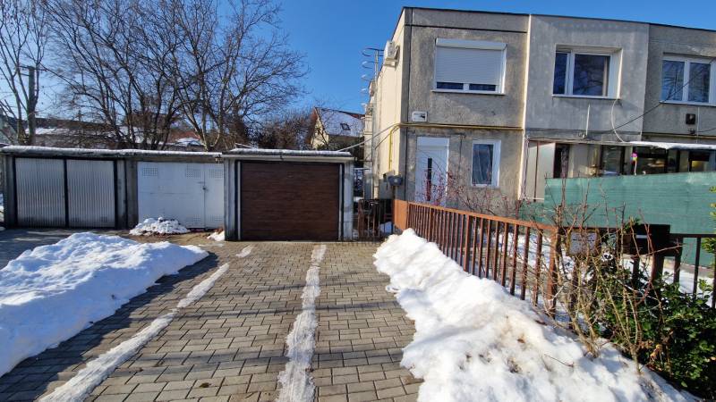 A 15 lakásból álló sorház a 80-as évek elején hagyományos ház gyári elemekből, panelből épült.Minden ingatlan önálló, Kis előkerten keresztül lehet megközelíteni.A lakástól 15 méterre található egy tégla garázs és egy saját zárható tároló.Az ingatlan központi helyen található, de mégis kis csendes mellékutcában.A hasznos alapterület 73nm.Földszint:-konyha-előszoba-wc-szobaEmelet:-2 szoba-kádas fürdőszoba wc-velAz ingatlan átlagos állapotban van, igény szerint lehet felújítani, modernizálni.A kiürítés folyamatban van, pár héten belül teljesen üres lesz, azonnal birtokba vehető.A melegvíz és a fűtés néhány éves korszerű Ariston gázcirkóról üzemel.A vételár a garázst és a tárolót is tartalmazza!