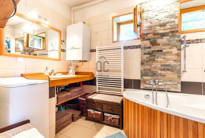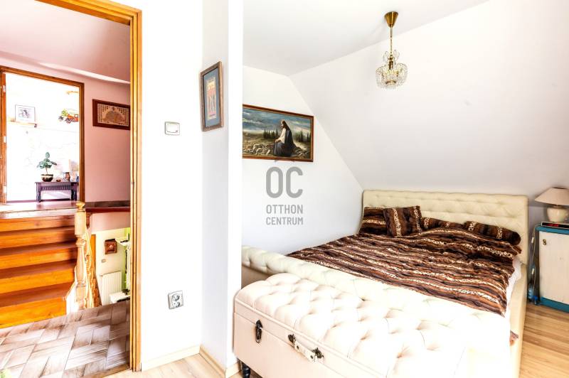 Eladó Szentendre Petyinán, aszfaltozott, örök panorámás, csendes zsákutcában 420 m2 telken, egy egyedi tervek alapján épült 80 nm-es, 10 nm pincei tárolóval, két, összesen 23,5 nm terasszal rendelkező 1+3 (jelenleg 2+1) szobás, 1990-ben épült jó állapotú családi ház. Az épület felújított, korszerűsített, és jól karban tartott. Redőnnyel és szúnyoghálóval is rendelkező nyílászárói termó üvegezésűek, falai szigeteltek, fűtését kondenzációs gáz cirkó biztosítja, de a nappaliban esztétikus és hangulatos kis kályha és hűtő fűtő klímaberendezés is rendelkezésre áll. Beosztását a földszinten előszoba, konyha, étkező, fürdőszoba és tágas nappali, a tetőtérben egy külön wc, két gardrób, és két szoba alkotja, mely szobák egyike eredetileg két félszobát alkotott, a visszaalakítás egyszerűen megoldható. Az egyedi tervezés a tereket apró szinteltolásokkal, valamint a nappaliból és az étkezőből is megközelíthető, összesen 23,5 nm-es terasszal gazdagította. A gondozott kertel rendelkező telken az elektromos kapun át bejutva két autó számára beállóhelyet, a terasz alatti terület beépítésének köszönhetően egy 4, a pincében pedíg egy 6,5 nm-es tárolót is találunk. Fontos, hogy az ingatlan, a Csok-nál kritériumként előírt redukált alapterületi minimum nm-t nem éri el, de otthon startnak megfelel. Ha felkeltettem érdeklődését, várom hívását!