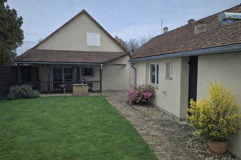 Baján kínálunk megvételre egy újszerű állapotú családi házat!Az ingatlan 65 m² alapterületű, 400 m²-es telken helyezkedik el. Falazata vegyes, homlokzata kőzetgyapottal hőszigetelt, amely kiváló energiahatékonyságot és kellemes lakókörnyezetet biztosít. Tájolása északkeleti.A ház elosztása praktikus: nappali + szoba + 2 félszoba, a szobák laminált padlóburkolattal rendelkeznek. A 3 rétegű, műanyag nyílászárók kiváló hő- és hangszigetelést nyújtanak.A fűtésről kondenzációs kazán, míg a komfortérzetről hűtő-fűtő klíma gondoskodik. Az udvar gondozását öntözőrendszer segíti, amely fúrt kútról működik, így a fenntartási költségek alacsonyak.Az ingatlanhoz egy fedett terasz, tárolóhelyiség és garázs is tartozik. Újszerű, azonnal költözhető, ideális választás fiatal pároknak, kisebb családoknak vagy befektetésnek.Irányár: 64.000.000 Ft