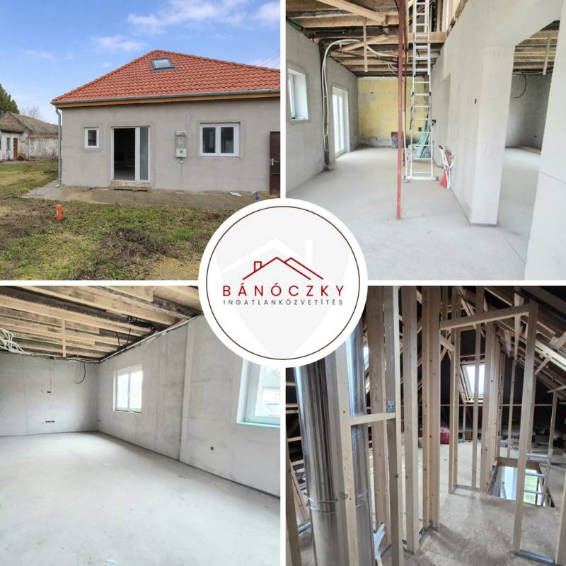 Baján, a Homokváros csendes részén kínálunk megvételre egy 375 m²-es, telken álló, kelet–nyugati fekvésű, 120 m²-es, ikerház jellegű családi otthont. Az ingatlan jelenleg felújítás alatt van, melynek a készültségi állapota mintegy 70%-os, így különleges lehetőséget nyújt arra, hogy új tulajdonosa saját stílusára és igényeire szabva fejezze be, miközben a legköltségesebb és legidőigényesebb munkák már elkészültek.A ház új Bramac cserepezésű tetőt kapott, a teljes víz-, villany- és szennyvízhálózat korszerűen kiépítésre került, új, 3×25A teljesítményű villanyórával. A padlófűtés csövezése már a szerelőbetonban található, a háromrétegű műanyag nyílászárók és a biztonsági bejárati ajtó pedig gondoskodnak a komfort és az energiahatékonyság alapjairól. A kémény elkészült, így a fűtési rendszer szabadon megválasztható.A földszinten egy tágas nappali–konyha tér, hálószoba és fürdőszoba kerülhet kialakításra, míg a tetőtérben további szoba és fürdő kaphat helyet. A hátsó melléképület pedig számos lehetőséget rejt: kialakítható belőle külön garzon, vendégház, műhely, iroda, edző- vagy wellnessrészleg, de akár kiadásra alkalmas apartman is.Az udvarban a garázs alapja már elkészült, így a parkolás fedett formában is könnyen megvalósítható. A nyugodt környezet, a praktikus elrendezés és a befejezés szabadsága együtt egy olyan ingatlant kínál, amely egyszerre jelent biztos értéket és személyre szabható otthont.Irányár: 59.000.000 Ft