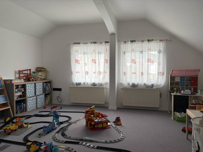 Eladásra kínálok Budapest agglomerációjában, Mogyoródon egy 2 GENERÁCIÓS CSALÁDI HÁZAT!5 szobás, 3 SZINTES (pince, földszint, tetőtér).A ház tégla szerkezetű, szigetelt, cserép tetővel borított.Felosztása : Szuterén szint, 100 nmFöldszinten szintén 100 nm.Beépített tetőtér 60 nm. (kerekített értékek)A földszint és a tetőtér jelenleg lakórészként funkcionálnak, 5 szobával, 2 fürdőszobával, tárolóval, előterekkel, és közleledőkkel. A szuterén szinten is található vizesblokk, konyha, egy nagy méretű, 2 kocsi beállására elegendő garázs, fürdőszoba, szoba, és külön bejárattal rendelkezik, igy az ingatlan hivatalosan is 2 generációs, csökkentett rezsivel bír. A szuterénszint felújításra szorul, azonban akár egy üzlethelyiség kialakítására is alkalmas adottságait tekintve.A földszinten a nappaliból egy nagy méretű teraszra tudunk kimenni.A tetőtérhez kb 15 nm nagyságú lapos erkély tartozik.A tetőtér külön alkalmas lehet önálló lakás kialakítására.Extra felszereltség : elektromos aluminium redőnyök, szúnyoghálók, biztonsági kamera. Éjszakai beltéri világítás. Az udvarban még egy kb 40 nm nagyságú, önálló épület van, amely felújítandó, könnyűszerkezetes, és van benne egy hangulatos kemence, igy akár a nyári esték kellemes része is lehet ez a tér. A ház színezése még hiányzik egy oldalon. A színezés befejezését a tulajdonos vállalja.Az épület felújítására az elmúlt években került sor, amely magába foglalta a teljes villanyvezeték hálózatot, a vízvezetéket, és az esztétikai részét is. Minőségi alapanyagokat használtak fel! Elhelyezkedését tekintve kiváló. Előkerttel rendelkezik. Közlekedés kiváló! Hév 8 perc séta! Buszmegálló 4 percre. Tehermentes tulajdon!Hívjon bizalommal!