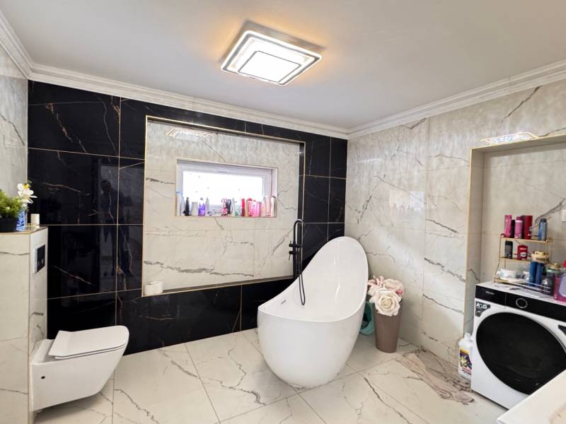 CSAK AZ IRODÁNK KÍNÁLATÁBAN! XXII. kerületben, Budafokon kínálunk eladásra egy FELÚJÍTÁS ALATT ÁLLÓ, nagy nappali + 4 szobás, 2 fürdőszobás, étkező-konyhás 214 m²-es lakóterű magasföldszinti CSALÁDI HÁZAT, melynek az alsó szintje plusz 110 m2, amely egy 647 m²-es telken helyezkedik el.A házba belépve egy tágas nappaliba érkezünk, innen tovább haladva található egy étkezős - konyha, beépített modern konyhabútorral. Széles folyosóról nyílnak a gyerek szobák, a nagy kádas fürdőszoba, és két nagy méretű hálószoba saját gardrób helyiségekkel. Az egyik hálószobához tartozik még egy zuhanyozós fürdőszoba WC-vel és egy gardrob szoba.A másik hálószobához is tartozik külön gardrob szoba.A ház alatti alsó szint 110 m2, ahol beépített konyha, kamra, kis szoba, zuhanyzós fürdőszoba WC-vel is kialakításra került, plusz egyéb tárolásra alkalmas terület is maradt.LÁSD AZ ALSÓ SZINT ALAPRAJZÁT !A ház ideális nagycsaládosoknak, de két generációnak is kényelmes tereket biztosít, a 214 m²-es lakótér, és az alsó szint helyiségei. LÁSD A LAKÓTÉR /magasföldszint/ HELYISÉGEINEK ELRENDEZÉSÉT AZ ALAPRAJZON !MŰSZAKI JELLEMZŐK: - Az épület az 1960-1970-es években épült vegyes falazattal. - 2024-2025-ben teljes körű felújításon esett át.- ennek részeként megtörtént a tetőcsere, vasbeton födém került kialakításra- a teljes gépészet és fűtésrendszer megújult - a nyílászárók cseréje is megtörtént, háromrétegű, hő- és hangszigetelő műanyag ablakok, új bejárati ajtó került beépítésre - a ház külső falaira 15 cm-es dryvit hőszigetelés került - a fűtés hőszivattyúval történik, minden helyiségben padlófűtéssel.PARKOLÁS: A kertben több autó számára térkövezett felszíni beálló biztosított.EXTRÁK: A házban 5 db hűtő-fűtő klíma található.KÖRNYEZET: Az ingatlan csendes, kertvárosias környezetben található, kiváló tömegközlekedéssel és közeli bevásárlási lehetőségekkel (ALDI, Campona, Tesco). A közelben óvoda, két tannyelvű iskola és gimnázium is működik.. Autóbusszal 15–20 perc alatt elérhető a 4-es metró kelenföldi végállomása. Budapest belvárosa pedig sétatávolságban lévő buszjáratokkal fél óra alatt megközelíthető.Az ingatlan ELŐRE EGYEZTETETT IDŐPONTBAN tekinthető meg – akár hétvégén is.KÉSZPÉNZES ÉRDEKLŐDŐK JELENTKEZÉSÉT VÁROM !FORDULJON HOZZÁM BIZALOMMAL, VÁROM HÍVÁSÁT, ÉRDEKLŐDÉSÉT!(G.I.)