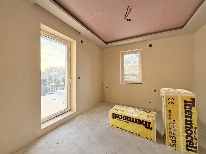 Budapest XVI. kerületében, Sashalom közkedvelt részén, az Újszász utca 35. szám alatt, 578 m²-es telken megépült, önálló, új építésű családi ház eladó megbízható, számos referenciával rendelkező kivitelezőtől.Az ingatlan elkészült, a teljes szerkezet, gépészet és külső környezet kialakítása megtörtént, már csak a burkolatok, szaniterek és beltéri ajtók kiválasztása és beépítése hiányzik, így az új tulajdonos saját ízlésére szabhatja a belső tereket.A ház nettó 166,21 m² lakótérrel és 21,59 m²-es garázzsal rendelkezik, kétszintes kialakítású, modern megjelenésű és átgondolt alaprajzú.Az épület Porotherm 30-as téglából készült, 15 cm EPS homlokzati hőszigeteléssel. A padlószerkezetbe 10 cm lépésálló hőszigetelés, a födémbe 30 cm ásványgyapot került beépítésre. A ház monolit vasbeton födémmel épült, amely kiemelkedő statikai és akusztikai tulajdonságokat biztosít. A nyílászárók 6 légkamrás, háromrétegű üvegezésűek, alumínium, elektromos redőnyökkel szerelve.A fűtést és a használati melegvíz-ellátást split rendszerű hőszivattyú biztosítja padlófűtéssel, a hűtést fan-coil rendszer szolgálja minden helyiségben. Az ingatlan H tarifás villanyórával, valamint napelem előkészítéssel került kialakításra.A földszinten egy közel 59 m²-es amerikai konyhás nappali található, közvetlen 21,83 m²-es teraszkapcsolattal. Ezen a szinten helyet kapott egy hálószoba saját fürdőszobával, egy külön fürdő az előtérből nyílóan, valamint a garázs. Az emeleten három hálószoba, egy fürdőszoba, gépészeti helyiség és egy 12,52 m²-es terasz került kialakításra üveg korláttal.Az ingatlanhoz térkövezett gépkocsi-beálló és járdák, elektromos kapu, valamint riasztó- és kamerarendszer előkészítés tartozik.A még választható belső elemek az alábbi árkategóriákig kerülhetnek beépítésre:-hidegburkolat: 10 000 Ft/m²-melegburkolat: 6 000 Ft/m²-beltéri ajtók: 80 000 Ft/db-fürdőkád: 70 000 Ft-csaptelepek: 25 000 Ft/db-épített zuhany-Legrand elektromos szerelvényekAz ingatlan ideális választás azok számára, akik már elkészült, azonnal továbbfinomítható, modern és energiatakarékos otthont keresnek Budapest XVI. kerületének egyik legkedveltebb részén.INGYENES hitel tanácsadás, CSOK Plusz - Otthon Start ügyintézés!BANKFÜGGETLEN hitelcentrumunk az összes elérhető bank és hitelintézet ajánlatát versenyezteti az Ön kedvéért, ráadásul DÍJMENTESEN.- Egyedi, bankfiókban nem elérhető kamat- és díjkedvezmények- Hitelképesség vizsgálat- Idő, energia és pénz megtakarítás- Teljes hivatali ügyintézésAmennyiben hirdetésem felkeltette az érdeklődését vagy egyéb információra van szüksége hívjon bizalommal!