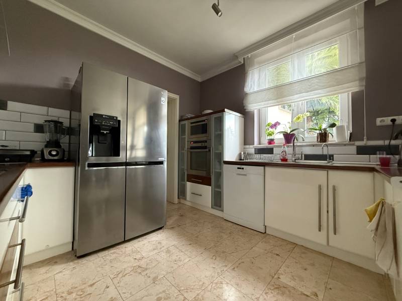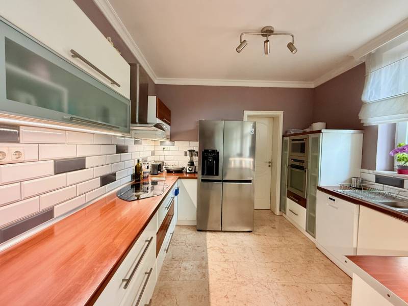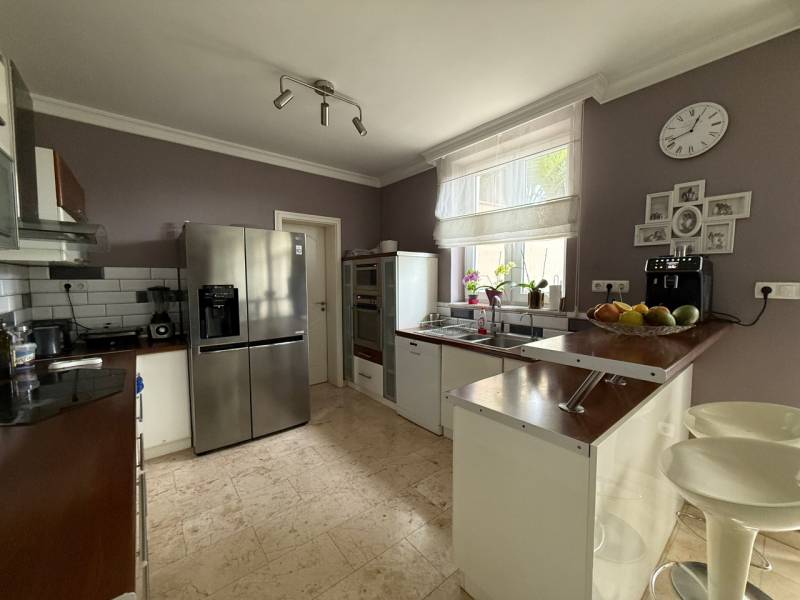 Panorámás villa többgenerációs kialakítással Szentendre domboldalánSzentendre egyik legnyugodtabb, domboldali részén, a Bokros utcában található ez a különleges kialakítású, kúria jellegű villa, amely közel 500 m² hasznos alapterülettel és egy 1500 m²-es, panorámás telekkel rendelkezik. Az ingatlan legnagyobb értéke a rugalmassága: minden szint önálló lakóegységként működik, így a ház egyszerre alkalmas nagycsaládos, többgenerációs használatra vagy akár befektetési célú hasznosításra is.A földszinten két külön lakás kapott helyet. Az egyik – nagyobb alapterületű – lakrész ideális fő lakóegységként: nappali, hálószobák, konyha, fürdő és közvetlen teraszkapcsolat teszi kényelmessé a mindennapokat. A másik földszinti lakás jól szeparált, önálló élettérként működik, vendégeknek, családtagoknak vagy akár irodai, apartman jellegű használatra is.Az emeleti szint egy külön világ: tágas terek, több szoba és egy nagyméretű terasz, ahonnan lenyűgöző panoráma nyílik Szentendrére és a környező dombokra. Ez a lakás akár teljesen önállóan is használható, hosszabb távú bérbeadásra is alkalmas.Az alsó szint nem klasszikus alagsor: egy közel 60 m²-es garázs, több tárolóhelyiség és a teljes gépészet kapott itt helyet, praktikus és jól használható kialakítással.A telek gondozott, a környezet csendes és privát, mégis néhány perc alatt elérhető a szentendrei belváros. Az aszfaltos megközelítés egész évben problémamentes.Ez az ingatlan nem egyetlen élethelyzetre készült. Olyan ház, amely együtt tud nőni a családdal, alkalmazkodik az igényekhez, és hosszú távon is értéket képvisel.Irányár: 299 millió forint