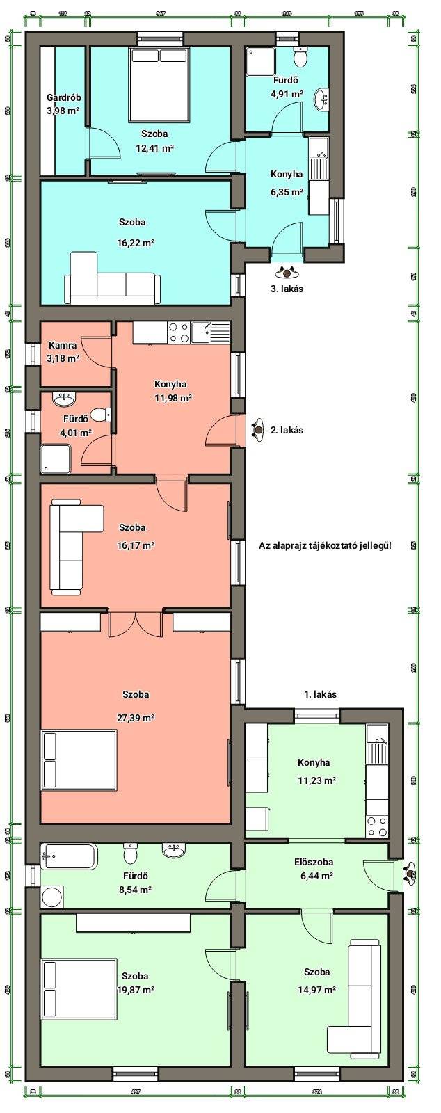 BEFEKTETŐK FIGYELEM!!! *** 2 db lakás vételáráért cserébe 3 db LAKÁST KAP! *** Hatvan város KÖZPONTJÁBAN eladó egy saját 454 m2-es telken elhelyezkedő, 3 db külön helyrajzi számon nyilvántartott lakás, amelyek alapterülete összesen nettó 151m2. Az ingatlanok megvásárlása kizárólag egyben lehetséges a telekkel együtt. A teljes közmű hálózat be van vezetve az ingatlanokba. Az épület külső állapota felújítása került, illetve a 2. lakás szintén teljeskörű felújításon esett át! Az udvarban található minden lakáshoz külön tároló is.1. Lakás 51 m2 - Átlagos állapotú, utca fronti kilátással rendelkezik. (2szoba, előszoba, fürdő, konyha helyiségekből áll)2. Lakás 59m2 - Felújított állapotú, belső udvarra néznek az ablakai. (2szoba, fürdő, konyha, kamra helyiségekből áll) - Gépészet, burkolatok, fürdőszoba, minden új3. Lakás 41m2 - Felújítandó állapotú, belső udvarra néznek az ablakai. (2szoba, fürdő, konyha, kamra helyiségekből áll)Hosszú távon JÖVEDELMEZŐ és ÉRTÉKÁLLÓ BEFEKTETÉSNEK számít, köszönhetően a központi elhelyezkedésnek, illetve a 3 db külön bejáratú lakásnak, amelyek könnyen bérbe adhatóak ezáltal! Becsült bérleti díj egy évre kb. 5-6 millió Ft között várható. 3. lakás felújítási költségét is beleszámolva kb. 7-8% hozamnak felel meg!További információért hívjon bizalommal!
