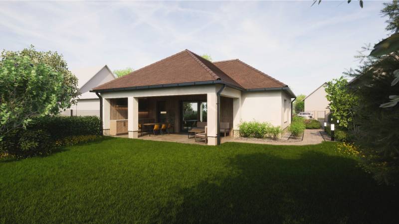 Ecséden, 750 m²-es telken, 119 m²-es új építésű családi ház eladó!Az ingatlan modern elrendezésű: – amerikai konyhás nappali – 3 hálószoba – fürdőszoba – külön WC – háztartási helyiség – teraszA ház energiatakarékos kivitelezésben épül, korszerű hőszivattyús fűtéssel, padlófűtéssel. CSOK Plusz és Otthon Start igénybe vehető!Főbb műszaki jellemzők – 30-as nútféderes tégla falazat – fa födém – antracit betoncserép tetőhéjazat – 15 cm EPS homlokzati szigetelés – 10 cm Austrotherm AT-N100 padlószigetelés – 25 cm ásványgyapot födémszigetelés – 6 légkamrás, 3 rétegű üvegezésű nyílászárók – 10 kW monoblockos hőszivattyú – padlófűtésVálasztható műszaki tartalom (alapárban) – hidegburkolat: 3.000 Ft/m²-ig – melegburkolat: 3.000 Ft/m²-ig – csaptelepek: 15.000 Ft/db-ig – kád vagy zuhany: 40.000 Ft-ig – beltéri ajtók: 35.000 Ft/db-igMagasabb árkategóriás anyagok is választhatók a különbözet finanszírozásával.Elektromos kiépítés – szobák: 3 db konnektor – nappali: 4 db konnektor + internet és kábeltévé kiállás – konyha: 6 db konnektor – világítás: helyiségenként 1 db – kábeltévé előkészítés – riasztó előkészítés – kapumozgató elektronika előkészítésÖsszegzés – Lakótér: 119 m² – Telek: 750 m² – Elosztás: amerikai konyhás nappali + 3 szoba – Terasz – Korszerű hőszivattyús fűtés, padlófűtéssel – CSOK Plusz és Otthon Start igénybe vehető Kérésre teljes tervdokumentáció és részletes műszaki leírás is elérhető.Díjmentes hiteltanácsadás és ügyintézés szintén elérhető nálunk!