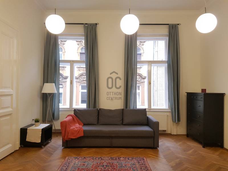 VII. kerületben OSVÁT UTCÁRA néző, CSENDES, 98 nm-es nagypolgári lakás kiadó. A lakás klasszikus alaprajzú, központi tere az impozáns nappali, két oldalán egy-egy tágas hálószobával. A konyha-étkező külön nyíló, innen nyílik még egy kisebb hálószoba. A kényelmet 2 fürdőszoba biztosítja. Az ingatlan jó állapotú, gépesített konyhával rendelkezik és a képeken látható bútorokkal berendezett. A fűtést és melegvíz ellátást gáz cirkó biztosítja. A rezsi költség fogyasztás alapján fizetendő. A Erzsébet körúton lévő társasház kívül-belül jó állapotú, liftes (proxival működik) , a lakás egy kis függőfolyosóról nyílik. A környék kiemelkedő infrastruktúrával rendelkezik, 200 méterre található a Blaha Lujza tér ahol elérhető: M2 metró, 4/6-os villamos, számtalan buszjárat, a gyönyörűen felújított Corvin Áruház és az Europeum Bevásárlóközpont stb. gyakorlatilag minden ami a mindennapi életben szükséges. Az ingatlan méretéből, elosztásából és elhelyezkedéséből adódóan ideális nagyobb család részére vagy irodai célra. Amennyiben további információra lenne szüksége vagy szeretné megnézni az ingatlant úgy kérem vegye fel velem a kapcsolatot!