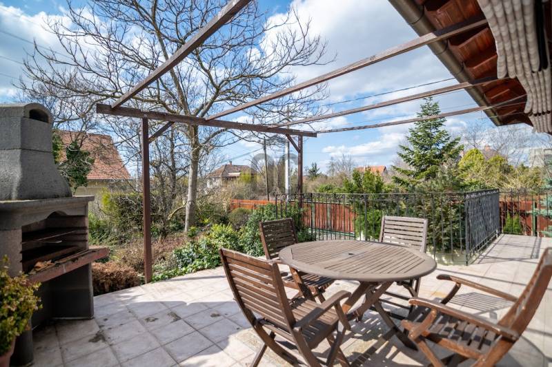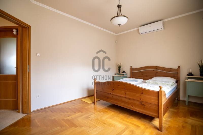 Eladó igényes, saját részre épített családi ház Budafok csendes részén – 108 m² + 36 m² mélygarázs, gyönyörű parkosított kerttelBudafok legfelkapottabb kertvárosi részén, a Tegzes utca környékén lévő, csendes kis utcában, egy 760 m²-es, saroktelken elhelyezkedő, gondosan megépített, kiváló állapotú családi ház eladó. Az ingatlan 2006-ban saját részre épült, pince + földszint kialakítású, összesen a garázzsal együtt 132 m² hasznos alapterülettel.Főbb jellemzők:-Alapterület: 132 m² (nappali + helyiségek + garázs) +25 m² terasz-Telek mérete: 760 m² – gondozott, parkosított kerttel, gyümölcsfákkal, kerti sütögetővel-Építés éve: 2006-Energetikai besorolás: DElosztás, helyiségek:-Tágas nappali-2 hálószoba + 1 félszoba (dolgozó/gardrób célra is alkalmas)-Gardróbszoba-Külön konyha + kamra-10 m²-es fürdőszoba (zuhanyzó + kád)-Külön WC-25 m²-es déli fekvésű terasz közvetlen kertkapcsolattal és sziklakerttelGépészet, extrák:-Fűtés: Gázkazán padlófűtéssel + radiátorokkal-Melegvíz ellátás: Napkollektor + melegvíz-tartály (puffertartályos rendszer)-3 db hűtő-fűtő klímaberendezés-Vízlágyító berendezés-Riasztórendszer-Műanyag nyílászárók redőnnyel, fa beltéri ajtók-Burkolatok: parketta és járólap kombináció-Hőszigetelt padlásfödém-Falazat: tégla, 10 cm külső szigeteléssel-Tető: Bramac betoncserép, sátortetős kialakítás, napkollektorral a déli oldalonParkolás, garázs:-36 m²-es, fűtött mélygarázs, elektromos garázskapukkal – akár 2 autó számára-Kerti beálló egy további autónak-Automata kapu és garázsajtókKözművek:-Teljes összközműves ellátottság: víz, villany, gáz, csatorna-Elektromos kapu és riasztó rendszerKiváló közlekedés: Mindössze 10 perc alatt elérhető Kelenföld vasútállomás és a 4-es metró végállomása, így a város bármely pontja könnyen megközelíthető. Autóval több útvonalon keresztül is gyorsan elérhető a belváros, míg az Allee bevásárlóközpont és a budaörsi nagyáruházak mindössze 10–15 perces autóútra találhatók. Közelben lévő buszjáratok: 150, 150B, 250, 250B, 251, 251A, 251BEz a Budafok kertvárosi részén található ingatlan tökéletes választás családok számára, akik minőségi kivitelezésű, jól megtervezett otthont keresnek nyugodt környezetben, mégis kiváló közlekedéssel és infrastruktúrával.Ne hagyja ki ezt a remek lehetőséget – tekintse meg személyesen is!