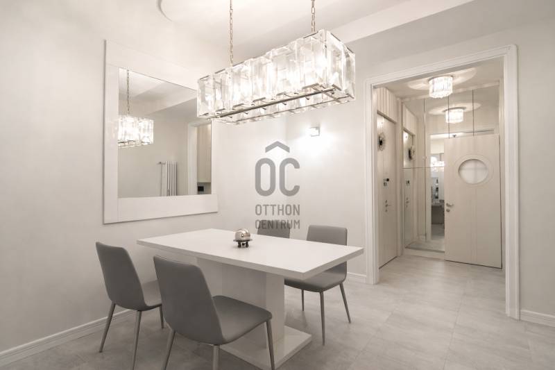Közvetlenül a Szent István Park mellett kínálunk megvételre egy 4. emeleti, háromszobás saroklakást, amelynek egyik legnagyobb értéke a kivételes elhelyezkedés és a több irányba nyíló panoráma. A lakásból egyszerre élvezhető a Szent István Park zöld látványa, a Duna panorámája, valamint a Pozsonyi út klasszikus eleganciája – ez a ritka adottság teszi igazán különlegessé ezt az ingatlant.A saroklakás néhány éve teljes körű műszaki és esztétikai felújításon esett át, belsőépítész tervei alapján. Az enteriőrt egyedi gyártású ajtók, bútorok és igényes burkolatok határozzák meg, a gondosan megválasztott világítási elemek, köztük a karakteres csillárok pedig elegáns, kifinomult hangulatot teremtenek.A biztonsági bejárati ajtón belépve egy tükrös beépített szekrénnyel ellátott előszoba fogad, innen nyílik a zuhanyzós fürdőszoba és az étkező, ahol szintén egyedi tervezésű, letisztult bútorok kerültek beépítésre. A közlekedőből további fürdőszoba érhető el, majd a lakás központi tere, a tágas nappali következik, amelyet nagy ablakfelületek, stílusos álmennyezet és halszálkás mintában lerakott fa parketta tesz igazán karakteressé. A nappaliból nyílik a két erkélyes hálószoba, amelyek tovább erősítik a lakás világos, átgondolt térélményét.Az ingatlan távfűtéssel rendelkezik egyedi méréssel, a korszerű fűtőtestek megjelenésükben a klasszikus stílust idézik, miközben megfelelnek a mai elvárásoknak.Újlipótváros nem csupán lokáció, hanem egy stabil értéket képviselő életérzés, ahol a park közelsége, a Duna látványa és a városrész hangulata hosszú távon is kiemelkedő értéket biztosít. A környék egyik ismert sajátossága a parkolás nehézsége, ugyanakkor ennél az ingatlannál megoldást jelent, hogy a lakástól mindössze 2 percre teremgarázs beálló is elérhető, amely külön, 15 millió forintért megvásárolható.Az ilyen adottságú, panorámás saroklakások ritkán kerülnek piacra ezen a környéken – érdemes személyesen is megtekinteni!A képek között látványtervvel minimalista burkolattal is megmutatjuk a konyhát - étkezőt. Az eredeti és a tervezett állapot egymás után látható.