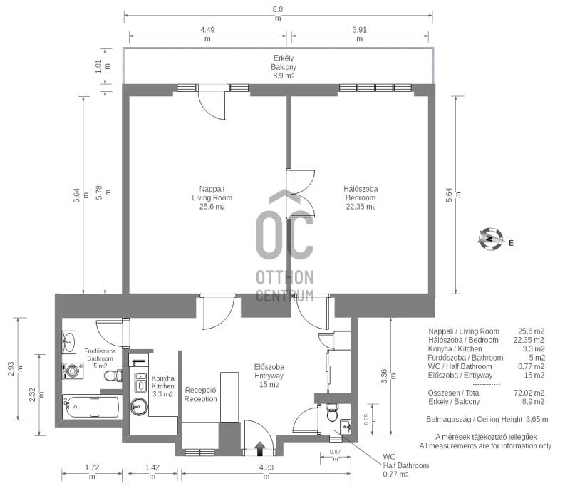 V. kerületben Szent István Bazilikától egy sarokra,karbantartott, liftes házban, 2. emeleti ( van félemelet, ezért 3. szint ), utcai, erkélyes, felújított, klimatizált lakás.A lakás 74 m2 - es, 2 nagy külön - bejáratú szobája és erkélye a Hercegprímás utcára néznek.2029.12.31. - ig fokozatosan emelkedő bérleti díjjal van kiadva.Bérlővel együtt vásárolható meg, befektetésnek ajánlom.