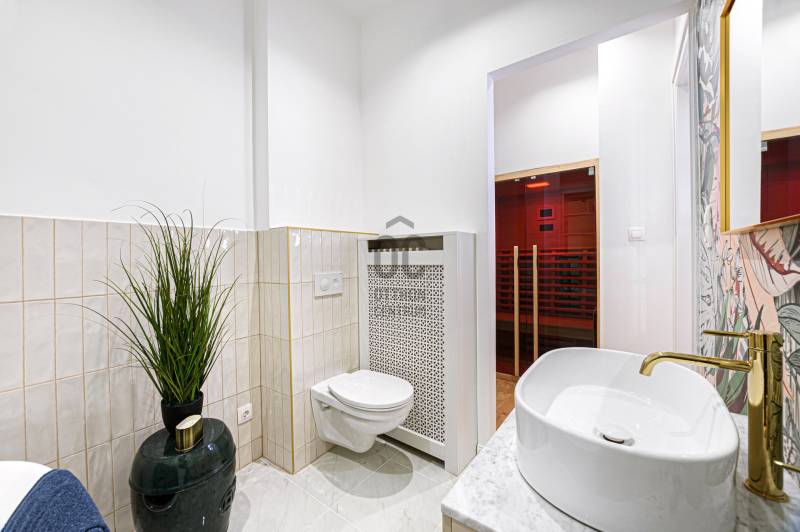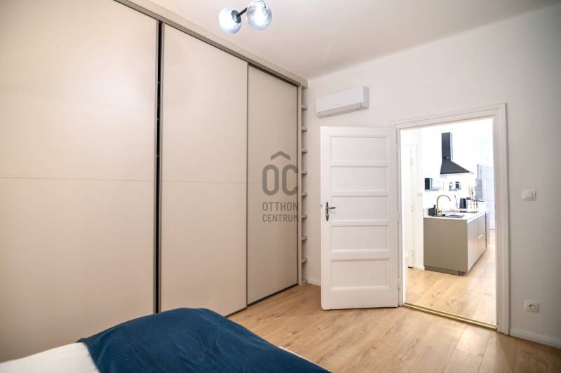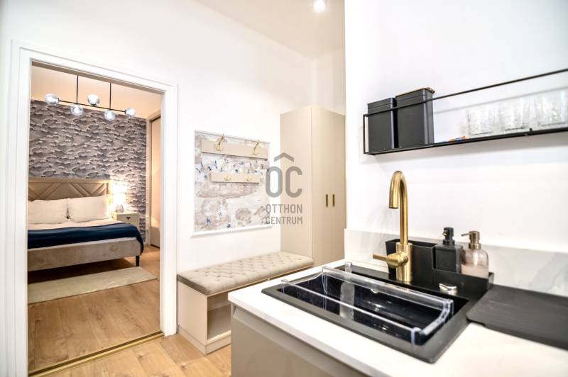 Budapest belvárosában, az V. kerületben, a sétáló Váci utca közvetlen közelében, a Nyáry Pál utca csendes és elegáns szakaszán eladó egy egyedülálló, teljes körűen felújított, 89 m²-es, erkélyes lakás.Központi elhelyezkedése ellenére az utca ezen része gyalogos, rendkívül nyugodt, így a lakás ritka kombinációját nyújtja a városi életnek és a meghitt nyugalomnak.Építészeti értékkel rendelkező házAz épület 1933-ban épült, tervezője Györgyi Dénes, a kivitelezést Sorg Antal vezette – koruk meghatározó alakjai.A ház építészete a modernizmus és a klasszikus elemek kifinomult ötvözete. A homlokzat különlegessége az elliptikus, homorú francia udvar, amely egyedi karaktert és rangot ad az épületnek.Az épület kívül-belül kiváló állapotban van, modern panorámalifttel, rendezett, reprezentatív lépcsőházzal és nyugodt, intelligens lakóközösséggel rendelkezik.Fény, tér és lenyűgöző kilátásA lakás a 4. emeleten található, ennek köszönhetően rendkívül világos.Az utcai 2 m²-es erkélyről ritka és lenyűgöző panoráma nyílik a Gellért-hegyre és a Szabadság-szoborra – olyan kilátás, amely egész évben értékálló és soha nem beépíthető.Elrendezés és felszereltségTulajdoni lapon szereplő alapterület: 89 m² + erkélyEgy légtérben kialakított nappali–étkező–konyhaKét különnyíló, tágas hálószobaKét fürdőszobaBeépített infravörös szaunaUtcára néző ablakokNappaliban és hálószobákban modern hőszivattyúk (hűtés–fűtés)Fűtés: házközpontiKözös költség: kb. 55 000 Ft, amely tartalmazza a fűtést és a vízfogyasztástMeleg vizet két energiatakarékos bojler biztosítjaMinőség, stílus és kényelemTeljesen megújított elektromos és vízvezeték-hálózatEredeti fa nyílászárók korszerű hőszigetelésselA lakás teljes bútorzattal és gépesítve kerül eladásraEgyedileg gyártott bútorok, prémium kész megoldásokMagas minőségű burkolatok, Carrara márvány munkapultokA nappaliban bioetanol kandalló a meghitt hangulatértElektromos redőnyökRiasztórendszerElhelyezkedés, ami önmagáért beszél5 perc sétára a Duna-partKözel a Fővám tér és a NagyvásárcsarnokFerenciek tere és Kálvin tér metróállomások 5 percen belülA szomszéd utcában bérelhető mélygarázsKávézók, éttermek, üzletek, kulturális és történelmi látnivalók a közvetlen közelbenElit, biztonságos és presztízs értékű környék, ideális saját célra és prémium befektetésnek isAzonnal költözhetőA lakás tehermentes és azonnal birtokba vehető – tökéletes választás azok számára, akik a minőséget, az építészeti értéket, a panorámát és a kifogástalan lokációt keresik.Szívesen válaszolok kérdésekre és megszervezem a megtekintést.
