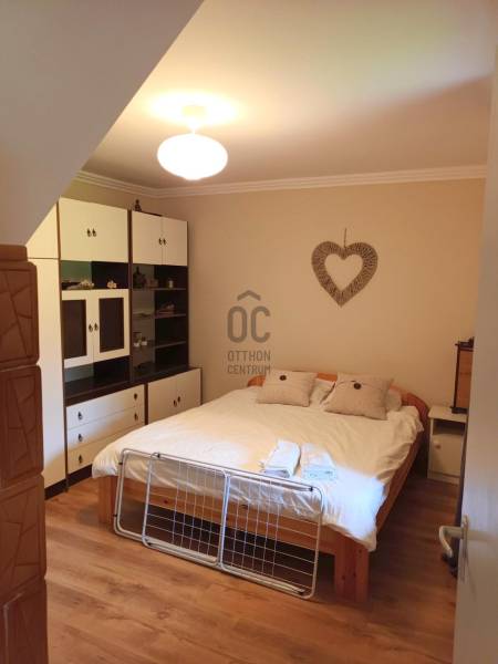 A Balatontól 5 perc sétára, Révfülöp településen kínálom megvételre ezt a két generáció együttélésére is alkalmas ingatlant. A 939 négyzetméteres telken 2 különálló épületet is találunk, egy téglaépítésű családi házat, illetve egy könnyűszerkezetes kisházat.A főépületben a földszinten 1 különnyíló szoba, nappali, fürdőszoba, külön Wc, konyha-étkező helyiségek találhatóak, a tetőtérben 2 különnyíló szoba - kialakított mosdórésszel, illetve közlekedő. A ház szépen felújított, minőségi burkolatokkal van ellátva. Fűtése gázcirkó, radiátoros hőleadással, de található benne egy hangulatos cserépkályha is. Minden helyiségben laminált padlóburkolat van.Az épülethez tartozik egy fedett, 9,14 nm-es terasz is.A kisházban 1 különnyíló szoba, nappali, fürdőszoba-Wc, konyha-étekező helyiségek vannak, illetve itt is találunk egy 15,76 négyzetméteres teraszt. A szoba és a nappali laminált burkolatot kapott, a többi helyiségben járólap van.Az ingatlan elhelyezkedése a településen belül rendkívül kedvező, minden szolgáltatás könnyen elérhető, két utcáról is van bejárata. Akár befektetési célból is tökéletes választás lehet! Révfülöp Balatonfüredtől 24, Keszthelytől 36, Siófoktól 35 km-re található.Amennyiben az ingatlan elnyerte a tetszését, hívjon bizalommal és megtekintésre időpontot egyeztetünk!Szolgáltatásaink körében szakszerű tanácsadással, bank-semleges hitel-ügyintézéssel és kedvező díjszabású ügyvéddel nyújtunk segítséget!