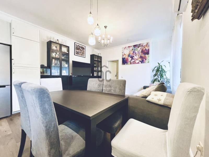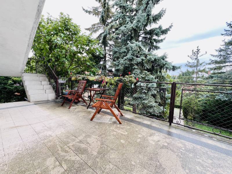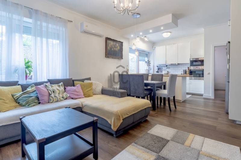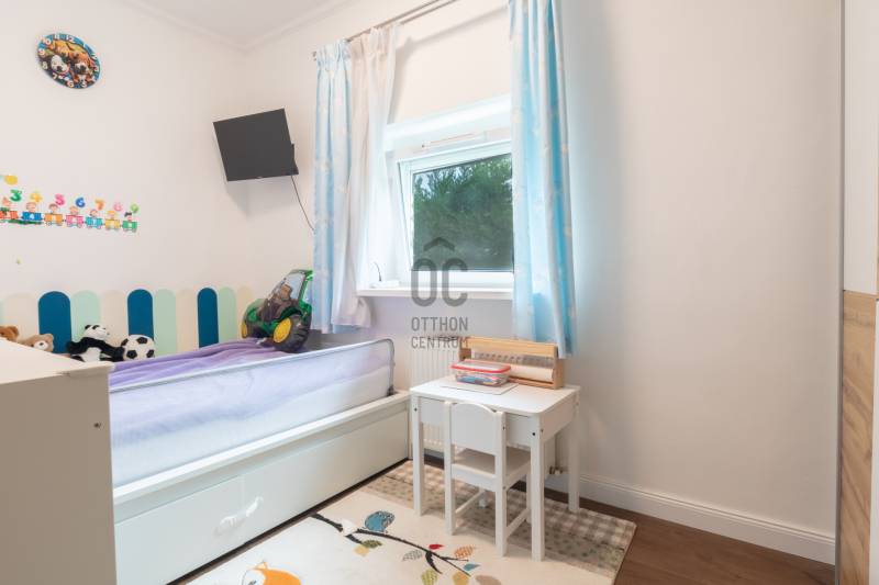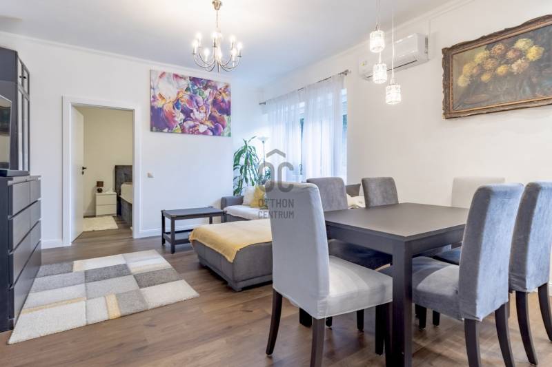 XII. kerületben, Farkasvölgyben, Mártonhegy határán, zöld környezetben keresi új tulajdonosát egy földszinti, 4 szobás, 80 m2-es lakótérrel, 27 m2-es terasszal, kerttel és 2 autóbeálló hellyel rendelkező lakás. Ha jó presztízsű, értékálló környéken szeretné megtalálni hangulatos új otthonát, akkor ezt feltétlenül nézze meg!KÖRNYÉK és KÖZLEKEDÉS:- XII. kerület déli része, Farkasvölgy.- Kifejezetten zöld, jó infrastruktúrával rendelkező, nagyon kedvelt környék.- A lakástól néhány percre elérhető iskola, óvoda, gyógyszertár, zöldséges, játszótér és pékség is.- A MOM Park, a Hegyvidék Központ, az Etele Pláza és Gazdagrét bevásárlási lehetőségei autóval pár perces távolság.- Az 53-as busz 1 perc sétatávolságra van, amellyel Kelenföldön elérhető a 4-es metró.- Márton Áron téren átszállhatunk az 59-es villamosra és a 8-as buszra amelyekkel a belváros könnyen megközelíthető.- Az M1-es és az M7-es autópályák öt percen belül elérhetőek.- A Sas-hegy és a Széchényi-hegy kiránduló útvonalai a közelből indulnak.- Az utcában a parkolás díjmentes.TÁRSASHÁZ:- 1943-ban épült, 1 szintes, 3 lakásos téglaépület.- Műszakilag rendszeresen karbantartott társasház, gondozott kerttel, kulturált lakóközösséggel.- Homlokzata szigetelt, jó állapotú.- A kertben öt gépkocsi részére beálló helyeket alakítottak ki, amelyből kettő tartozik a lakáshoz.LAKÁS:- Földszinti, 80 m2-es, 4 szobás, 27 m2-es terasszal rendelkező, esztétikailag frissen felújított ingatlan.- Felosztása: előszoba, amerikai konyhás nappali és étkező, 3 hálószoba, 1 fürdőszoba-wc, külön wc, tároló.- Tájolása észak-keleti, a nappali és a 12 m2-es hálószoba ablakai a gondozott utcafronti előkertre néznek.- A műanyag nyílászárók hang és hőszigeteltek, elektromos alumínium redőnyök gondoskodnak az árnyékolásról.- Az összes helyiséget vinyl padlóval burkolták, a belmagasság 270 cm.- Fűtését kondenzációs kazán látja el, a hő-leadást radiátorok biztosítják, a fürdőszobába törölközőszárítót is szereltek.- A hűtésről hűtő-fűtő klíma gondoskodik.- A vastag falak télen-nyáron tartják az ideális hőmérsékletet.- A villany-, a víz-, és a gázfogyasztás egyedi mérés alapján fizetendő, a lakás fenntartási költsége kedvező.- Az ingatlanhoz tartozik egy 27 m2-es terasz, amelyről néhány lépcső vezet a kertbe.- Ezenkívül az alagsorban egy körülbelül 6 m2-es tároló is rendelkezésre áll.-A két autóbeálló ára 10.000.000 Ft., amelyet a hirdetési ár nem tartalmaz.AZ INGATLAN MEGTEKINTHETŐ:- Személyesen- Online személyes bejelentkezésselFINANSZÍROZÁSI KÉRDÉSEKBEN – ONLINE IS – SEGÍTÜNK!- Bank-független hitelcenterünk díjmentesen versenyezteti az összes bank és hitelintézet ajánlatát.- Önnek csak annyi a dolga, hogy egyeztet munkatársunkkal, majd kiválasztja a hosszú távon is legkedvezőbb konstrukciót.- Szakértőink 20+ év tapasztalattal, fogyasztóbarát lakáshitelekkel, babaváró hitellel és teljes körű CSOK Plusz és OTTHON START program ügyintézéssel várják.- Időpont-egyeztetéssel munkaidő után is elérhetők.Hangulatos és igényes ingatlan, ajánlom korosztálytól függetlenül kiváló adottságai miatt.Kérdés esetén és megtekintési időponttal kapcsolatban várom hívását!
