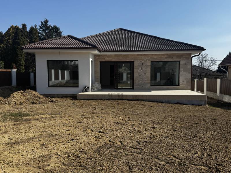 Új építésű családi ház eladó Érd, Fenyves-Parkváros csendes részénÉrd Fenyves-Parkváros nyugodt, autópályától távol eső részén kínálok megvételre egy új építésű, átgondolt elrendezésű családi házat, megbízható, referenciákkal rendelkező kivitelezőtől, több éves garanciával.Átadás: szerződéskötést követően 1–2 hónapon belül.Helyiségek:Nappali + étkező (36,6 m²), konyha (8,4 m²), kamra (3,11 m²), előszoba (11,46 m²),3 külön nyíló hálószoba (13,68 m², 13,68 m², 11,4 m²), gardrób (5,7 m²),2 fürdőszoba (zuhanyos és kádas, WC-vel – 6,9 m² és 6,95 m²),külön WC (2,2 m²), közlekedő (2,04 m²), mosókonyha/gépészet (3,9 m²),garázs (20,3 m²), terasz (30,5 m²).Műszaki tartalom:motoros redőnyök, dióbarna faerezetes nyílászárók, mennyezeti hűtés-fűtés,Panasonic BI-Bloc levegő hőszivattyú, klíma, vízlágyító,audió kaputelefon, DSC riasztórendszer, elektromos úszókapu és garázsbejárat.30-as tégla + 15 cm szigetelés, E gerendás betonfödém 20 cm szigeteléssel,travertin mészkő burkolatok.Választható belső elemek (a vételár része):burkolatok 13.500 Ft/m²-ig,szaniterek és csaptelepek 1,2 M Ft-ig,beltéri ajtók max. 200.000 Ft/db.Buszmegálló kb. 5 perc sétára található.Megtekintés rugalmasan. További információért várom hívását.