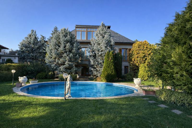 Fedezze fel álmai otthonát Diósdon – háromszintes, hét szobás, nagyvonalú családi ház eladóDiósd egyik legkedveltebb, csendes utcájában eladó egy 479 m²-es, háromszintes, exkluzív családi ház, amelyet térérzet, elegancia és átgondolt funkcionalitás jellemez. Az ingatlan egy 1111 m²-es, parkosított, szobrokkal díszített kertben helyezkedik el, ahol fűthető, római lépcsős medence és 12 m²-es télikert is szolgálja a pihenést.Földszint – a klasszikus elegancia szintjeA házba egy tágas előszobán és közlekedőn át jutunk, ahonnan megérkezünk a 36 m²-es nappaliba, amelyhez közvetlenül kapcsolódik a 12 m²-es télikertA 30 m²-es konyha–étkező–kamra egység családi és baráti összejövetelekhez ideális helyszín.Ezen a szinten található továbbá:37 m²-es hálószoba,12 m²-es gardrób,13 m²-es elegáns fürdőszoba,külön vendégmosdó,36,5 m²-es kétállásos garázs,valamint egy 13 m²-es terasz, amely a kert felé nyílik.Első emelet – a nagyvonalú terek birodalmaA felső szint 4,8 méteres belmagasságával és 73 m²-es nappali–társalgójával igazi különlegesség.Innen nyílnak a hálószobák, mind saját gardróbbal:25 m²-es hálószoba + 22 m²-es gardróbszoba,26 m²-es vendégszoba+ 21 m²-es gardróbszoba. Ezen a szinten található egy 14 m²-es, luxus kialakítású fürdőszoba valamint teraszkapcsolat is. A faburkolatú, üvegkorlátos lépcsőháza ház egyik legszebb, látványos eleme.Kertszint – külön élettér közvetlen kertkapcsolattalAz alsó szint egy önálló, teljes értékű élettér:konyha és étkezőnappali/vendégtér,fürdőszobakazánház és mosókonyhaközvetlen kijárat a gondozott kertbeFelszereltség és technológia- Vaillant gázkazán, padló- és radiátoros fűtés kombinációja-Szintenként szabályozható termosztátok-6 db Panasonic inverteres hűtő-fűtő klíma-Hóolvasztó rendszer a garázsbejárónál-A medencéhez külön fűtőkör-Automata, kútról üzemelő öntözőrendszerA kert – elegancia és nyugalomA parkosított, örökzöldekkel és díszcserjékkel beültetett kert a ház méltó folytatása.A fűthető, római lépcsős medence, a szobrok valamint a télikert együttese páratlan harmóniát teremt.Ez az ingatlan azok számára ideális választás, akik nem csupán házat, hanem életstílust keresnek – ahol a tér, az elegancia és a kifinomult részletek találkoznak.