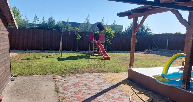 Kecskemét–Kadafalván, új építésű családi házas övezetben modern családi ház eladóKecskemét kedvelt városrészében, Kadafalva új építésű, rendezett családi házas övezetében, aszfaltos utcában, 711 nm-es telken kínálunk megvételre egy újszerű, 94 nm lakóterű, nappali + 3 szobás, kiváló műszaki adottságokkal rendelkező modern családi házat.Az ingatlan 2018-ban épült tégla falazattal, 30 cm-es födémszigeteléssel és 15 cm-es homlokzati hőszigeteléssel, igényes esztétikai és műszaki kivitelezéssel. Az átgondolt alaprajz élhető tereket biztosít: amerikai konyhás nappali, kamra, háztartási helyiség, külön WC, valamint fürdőszoba WC-vel szolgálja a mindennapi kényelmet. A nappaliból nyíló 20 nm-es fedett terasz ideális helyszíne lehet családi és baráti együttléteknek.A ház rendkívül alacsony rezsiköltségű, köszönhetően a korszerű szigetelésnek, minőségi nyílászáróknak, valamint a modern cirkókazánnak padlófűtéses hőleadással.A kert újonnan füvesített, automata öntözőrendszerrel ellátott, amely fúrt kútról is üzemeltethető. A telken továbbá fedett gépkocsibeálló, kerti tároló, valamint egy kisebb gyermekjátszótér is helyet kapott.Az ingatlan tehermentes, rugalmasan költözhető, 2–3 hónapon belül birtokba vehető.Ideális választás mindazok számára, akik egy korszerű, gazdaságosan fenntartható, nyugodt környezetben elhelyezkedő családi otthont keresnek.Amennyiben felkeltettem az érdeklődését, hívjon bizalommal!