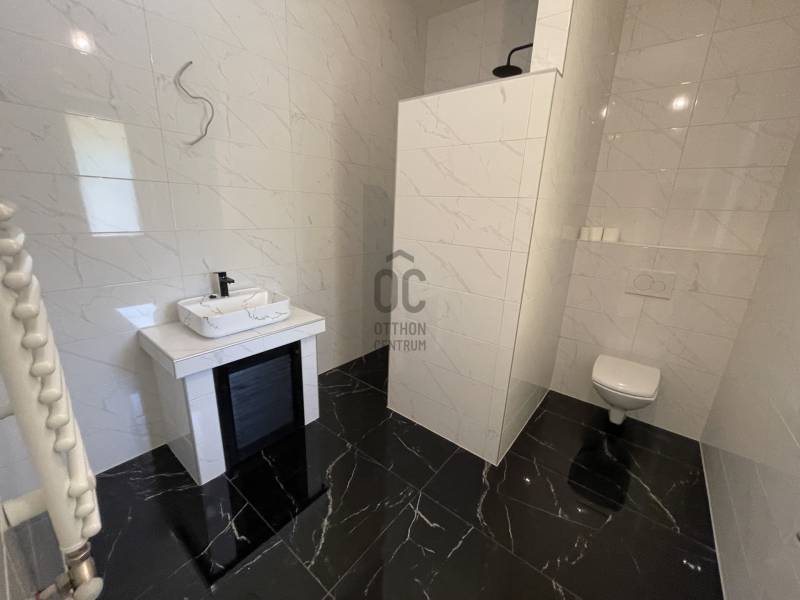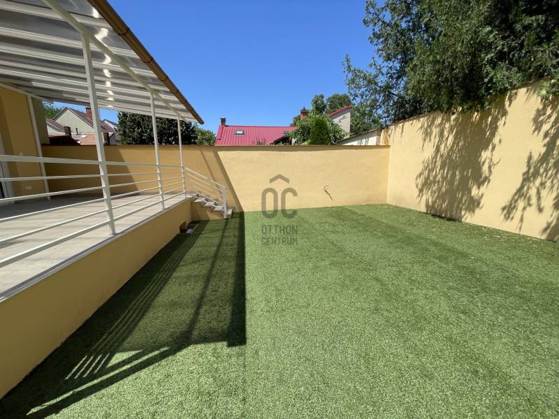 Debrecen frekventált övezetében, Nagyerdei környezetben várja új tulajdonosát ez a 2024-es, új építésű, nettó 187 m2-es, hatalmas, nagy belmagassággal rendelkező nappali+ 2 hálószobás magas műszaki tartalommal megépített, energia takarékos lakóingatlan, mely használatbavételi engedéllyel rendelkezik.Az ingatlan zártsorú beépítéssel, 349 m2-es telken épült, A + energia besorolású, földszint + emelet kivitelű.Minimális fenntartási költsége többek között a H tarifára csatlakoztatott Daikin hőszivattyúnak köszönhető, mely biztosítja az ingatlan hűtését és fűtését, padló, fal, mennyezet megoldással, továbbá szigetelt falainak és felső kategóriás külső nyílászáróinak, mely háromrétegű edzett üvegezéssel, rovarhálóval, részben távirányítható rolóval ellátott. Az ingatlan 10 kW-os napelem rendszer fogadására előkészített.Földszint helyiségei: nagyméretű nappali- étkező- konyha+ kamra, melynél a nappali igény szerint galériázható a nagy belmagasságnak köszönhetően, a nappaliból megközelíthető a polikarbonáttal fedett terasz, továbbá épített zuhanyzós fürdőszoba mellékhelyiséggel, MOFÉM csaptelepekkel.Emelet helyiségei: 2 hálószoba+ 1 gardrób, sarokkádas fürdőszoba WC- vel, gépészetnek kialakított helyiség mosókonyhával.Az ingatlanhoz tartozik egy 20 m2- es gépkocsibeálló HÖRMANN távirányítható szekcionált kapuval ellátva, elektromos autó töltésére alkalmas előkészítéssel, az udvaron több autó számára parkolási lehetőséggel, valamint az udvarról megközelíthető, pince szinten lévő tároló is.Azonnal birtokba vehető!További kérdéssel kapcsolatban keressen bizalommal!