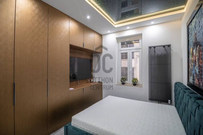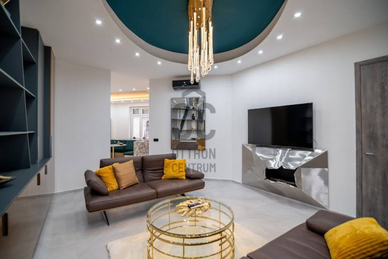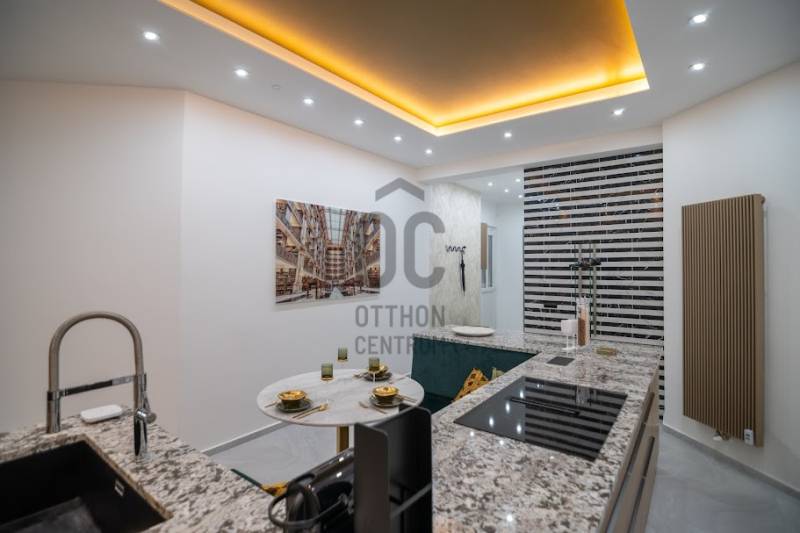Prémium minőségben felújított luxuslakás, panorámával a Szent István BazilikáraEladásra kínálunk a Szent István Bazilikával szemben, egy felújított, liftes társasház második emeletén található, kivételes adottságokkal rendelkező luxuslakást. Az ingatlan igényes lakberendezői tervezés eredménye, ahol a funkcionalitás és az elegancia tökéletes összhangban van.A lakás nagyvonalú terekkel rendelkezik, egyedi hangulatát neves designerek által tervezett bútorok és kiegészítők határozzák meg. A nappali központi eleme a látványkandalló, ahonnan a kanapén pihenve közvetlen kilátás nyílik a Bazilikára.Az átgondolt elrendezésű ingatlan tágas nappalival, nagyméretű étkezős konyhával, valamint két, saját fürdőszobával rendelkező hálószobával rendelkezik. A vendégek számára külön mosdó került kialakításra.A felújítás során kiemelt szempont volt a magas minőségű anyaghasználat, valamint az elegáns, letisztult életterek kialakítása.A fűtést mérhető központi fűtés biztosítja, míg a hűtésről minden helyiségben felszerelt, prémium minőségű klímaberendezések gondoskodnak.Az ingatlan teljes bútorzattal és gépészettel együtt kerül értékesítésre, melyek a vételár részét képezik.Igény esetén a közelben található Central Passage parkolóházban akár több parkolóhely is vásárolható, 17 millió Ft / hely irányáron.A lakás Budapest szívében, a VI. kerület frekventált részén helyezkedik el. A város ikonikus látnivalói – Szent István Bazilika, Zsinagóga, Operaház – mind sétatávolságon belül elérhetők. A környék számos hangulatos kávézóval, étteremmel, a Gozsdu Udvarral és az Óriáskerékkel is várja az itt lakókat.A közlekedés kiváló: metró-, villamos- és buszmegállók néhány perc sétára találhatók.
