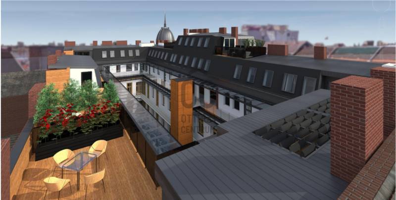 Exkluzív környezetben, műszakilag és esztétikailag a jelen elvárásainak megfelelően megtervezett és kivitelezett 119,405 m2 alapterületű, ötszobás lakás, 15,33 m2 terasszal eladó.A lakás Petschacher Gusztáv tervei alapján készült épület 5.emeletén helyezkedik el, háromszintes, ablakai a csendes belső udvarra és utcára néznek.Kedvező beosztású, az előtérből és a közlekedőből nyílik a három szoba. Az alsó szinten kerül kialakításra a fürdő és egy külön WC, zuhanyzó mely a hálószobából nyílik közvetlenül. A tágas, világos nappali és a konyha a második szinten kerül kialakításra. A lakás legtetején a harmadik szinten található a nagy tetőterasz, melyen jacuzzi alakítható ki.A lakás hűtéséről és fűtéséről oldalfali fan-coil rendszer gondoskodik. Riasztórendszer kiépítésre kerül. A hidegburkolatok (konyha, fürdőszoba, közlekedők) alatt padlófűtés kerül elhelyezésre. A lakások hűtését és fűtését H tarifás hőszivattyús rendszer biztosítja, így a lakások energiaellátásának költsége nagyon kedvező.A lakásokba a műszaki tartalomban szereplő konyhabútorok és gépek kerülnek beépítésre.A burkolatok és a konyhabútor színe tetszés szerint választható, a kijelölt opciók közül. Megfelelő időben történt megrendelői módosításokra lehetőség van.Projekt bemutatásaA lakások az UNESCO világörökség részét képező műemlék védettség alatt álló épület tejesen új építésű tetőterében helyezkednek el.A lakások legkésőbb 2023 szeptemberétől beköltözhetőek.A lakások mind saját lakásnak, mind értékálló befektetésnek is kiválóak. A már kivitelezés alatt álló 15 lakásos projekt keretében eladásra kínált változatos méretű egyszintes, belső kétszintes, illetve háromszintes luxus lakások nagyméretű tetőterasszal, télikerttel a legmagasabb igényeket kielégítő kivitelben készülnek.ELHELYEZKEDÉS:A lakások elhelyezkedése minden szempontból kedvező, kiváló közlekedési kapcsolatokkal. Közel a Pesti Broadway, pár perc sétára van a Zeneakadémia, az Operaház, az Operettszínház, a világörökség részét képező Andrássy út, a Liszt Ferenc tér, továbbá a Király utca, a Gozsdu udvar, amely a Budapest belvárosának egyik legdinamikusabban fejlődő központja, egy találkozási pont, ami összeköti a szórakozást, a gasztronómiát és a kultúrát. A szórakozó negyed a hét minden napján egyedülállóan izgalmas programokkal várja vendégeit.INGATLANOK:Exkluzív környezetben, műszakilag és esztétikailag a jelen elvárásainak megfelelően megtervezett és kivételezett 64-154 nm alapterületű, teraszos lakások eladók.Az új lakások a luxus minden elemével rendelkeznek, modern otthont teremtve a lakóknak, míg a világörökség részét képező, 1895-96-ban Petschacher Gusztáv tervei alapján épült eklektikus épület őrzi a régi hangulatot, amely az építés során felújított homlokzattal hangsúlyossá válik. Tradicionális környezetben teremt - a luxus minden elemével rendelkező - modern otthonokat.ÜTEMEZÉS:Az építkezés a januárban meghatározott ütemnek megfelelően, késedelem nélkül halad:- a tetőszerkezetet tartó acél keretállások elkészültek, továbbá a műemléki bádog tető fa fogadó részének a felrakása befejeződött, melyet követően az épület teljes lefedése megtörtént.- az udvarra kerülő 8 személyes új Kone lift tartószerkezete kész és 2023 márciusára a lift üzembe helyezése is megtörténik.- a homlokzat felújítás elindult.- a lakások falainak építése, az elektromos és gépészeti munkák is elindultak és megfelelő ütemben folynak.MŰSZAKI TARTALOM:PADLÓBURKOLAT- Beltér -A belső lépcső, kerámia burkolat készül, a megajánlott alap burkolattal. Opcionálisan lehet választani faburkolatot mely megegyezik a svédpadló anyagával. A belső vizes helyiségben, a belső lépcsőkön és a konyhákban, valamint a nappali terében elhelyezkedő konyhai területeken matt kerámia készül.A fürdőszoba egyik falára választható opciós burkolat. A nappali terekben és a hálószobákban svédpadló kerül lefektetésre.- Kültér - A teraszok, és a függőfolyosók csúszásmentes fagyálló kerámia ill. greslap burkolatúak, teljes felületű, üregmentes, flexibilis és fagyálló ragasztással.FALBURKOLAT- BeltérA vizes helyiségben ragasztott kerámia vagy greslap falburkolat készül álmennyezet alsó síkjáig.A pozitív éleket sarokprofillal lesznek kialakítva. A konyhákban a falon csak a konyhabútor és a felső szekrény között készül fali kerámia burkolat.Belső festések min.2 rtg. diszperziós fehér falfesték falakon, mennyezeten- Kültér -A teraszoknál külső Trespa falemezes burkolat kerül a határoló falakra, tölgy színben.NYÍLÁSZÁRÓK- Beltér -Három oldalon falcolt, vázszerkezetű Mantu Echt ajtók kerülnek furnérozott ajtólapokkal, eloxált alumínium kilinccsel és körrozettával.- Kültér - A lakásokhoz tartozó külső nyílászárók rendszere: Gealan S9000 ötkamrás, 3 rétegű, kiváló hang és hőszigetelést biztosító rendszer, kívül barna, belül fehér színű, távirányítóval működő külső redőnnyel. A tetőteraszok tolóajtó szerkezetűek.A tetősíkba beépített ablakok Fakro típusúak, elektromos mozgatású redőnnyel, belül fehér, kívül szürke. Ahol szükséges, betörésbiztos balesetvédelmi biztonsági fóliával ellátott üvegezéssel készül.Az öt ponton záródó, acéltokos lakásbejárati ajtók a hatályos előírásoknak megfelelő biztonsági szinttel, a vonatkozó klímaosztálynak megfelelően készülnek, barna színben.KONYHABÚTORA konyhában beépített süllyesztett led munkafénnyel készül, az ajtók színével azonos színvilágú, 18 mm vastagságú bútorlap kerül beépítésre. A munkala