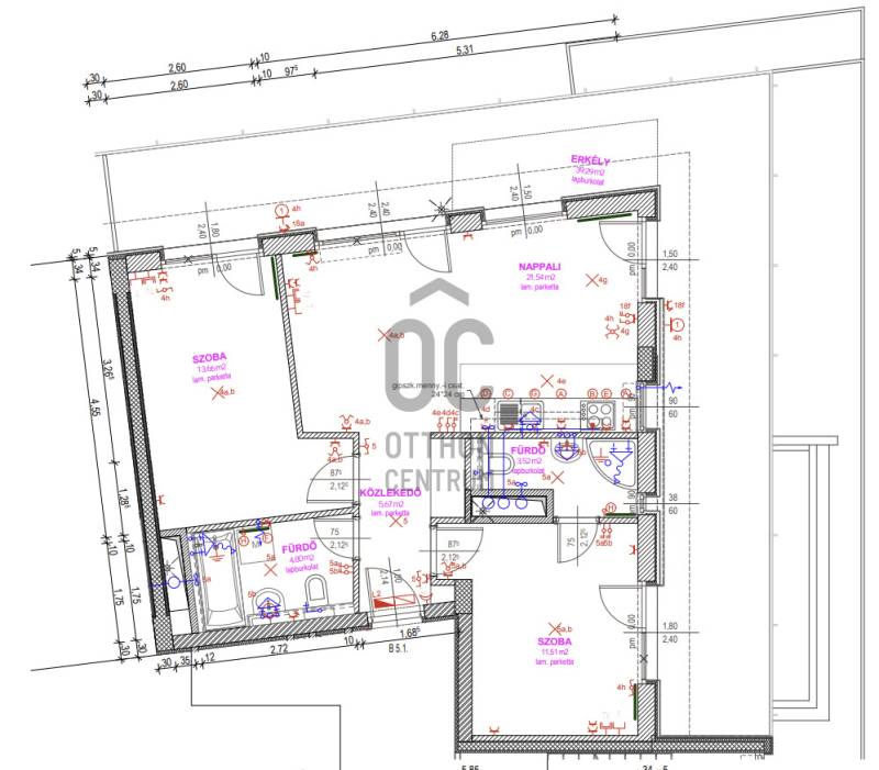 Erkély mérete: 40 m2