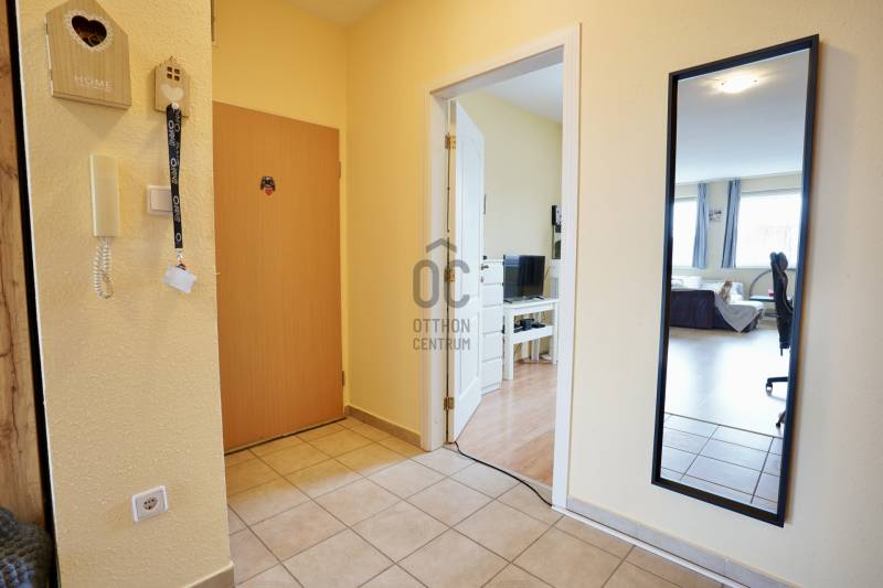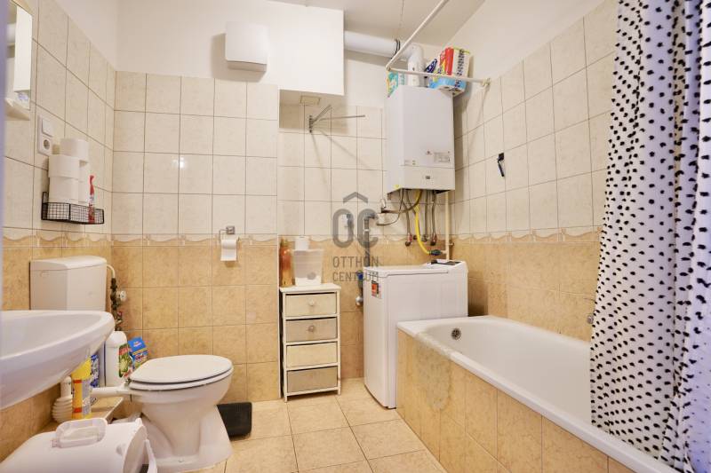 Budapest XVIII. kerületében, Újpéteritelepen, a Nemes utcában rendezett társasházban kínálunk megvételre egy 58 m²-es, 2 külön nyíló szobás, utcára és belső udvarra is néző, világos és jó elosztású első emeleti lakást.A ház 2003-ban épült, tégla szerkezetű, jó állapotú épület, mindössze 18 lakással. A társasház földszintjén üzletek találhatók – többek között pékség, virágbolt, dohánybolt és egy Otthon Centrum iroda is –, így minden fontos szolgáltatás karnyújtásnyira elérhető.A első emeleten található lakás tehermentes, hitelezhető.Az ingatlanban jelenleg megbízható bérlő lakik több éve , aki igény esetén szívesen maradna is, így kiváló lehetőség ez befektetés szempontjából. Amennyiben saját célra vásárolná meg az lakást a bérlő 60-90 napon belül tud kiköltözni. A házban több 2-3 szobás lakás is van még eladó.A lakás helyiségei:-nappali-étkező: 24,49 m²-konyha: 9,87 m²-külön nyíló hálószoba: 12,6 m² -előszoba: 5,27 m²-fürdőszoba-WC: 5,8 m²A fűtésről 2017-ben cserélt, kondenzációs gázcirkó gondoskodik, amelynek idei nagy karbantartása már megtörtént, valamint műanyag nyílászárók kerültek beépítésre.A villany- és gázórák feltöltőkártyás rendszerűek, a közös költség 19 140 Ft/hó. A lakáshoz zárható közös tároló is tartozik, a lépcsőház földszintjén.Parkolás az utcán ingyenes.A környék csendes, rendezett és biztonságos.A közlekedés kiváló: néhány perc sétával elérhető több buszjárat, amelyekkel gyorsan megközelíthető a Kőbánya-Kispest metróvégállomás és a belváros is. Autóval az Üllői út közelsége révén a reptér és az M0-ás is könnyen elérhető.Ha egy kiváló elhelyezkedésű, jól karbantartott, azonnal költözhető lakást keres a XVIII. kerületben, ez a lehetőség Önnek szól.Amennyiben bármilyen kérdés felmerült Önben vagy szeretné megtekinteni az ingatlant keressen bizalommal. Továbbá igény esetén a vásárlás teljes folyamata során magas szintű, szakmailag releváns hitelügyintézői támogatást biztosítunk, a finanszírozási lehetőségek áttekintésétől egészen a sikeres folyósításig.Ez az ingatlan a \"Felező csomag\" megbízási portfólióhoz tartozik. Részletek az Otthon Centrum weboldalán.