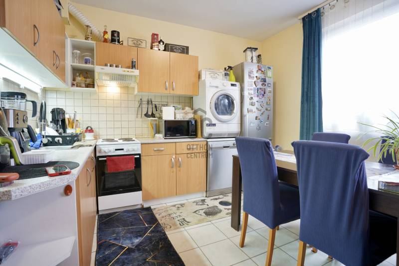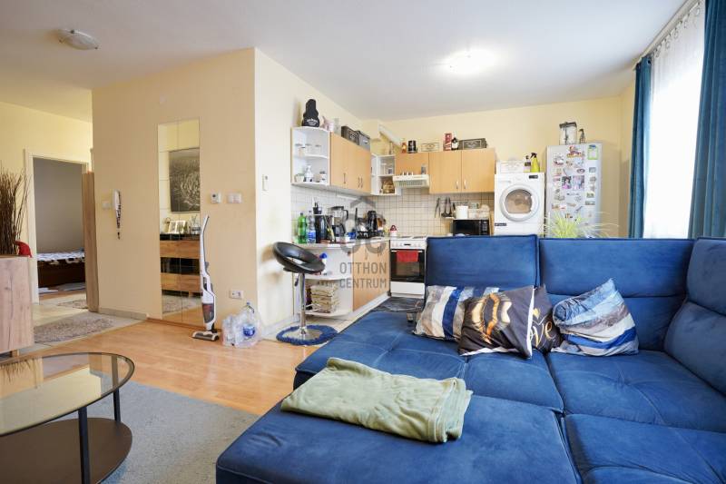 Budapest XVIII. kerületében, Újpéteritelepen, a Nemes utcában rendezett társasházban kínálunk megvételre egy 64 m²-es, 3 külön nyíló szobás, utcára és belső udvarra is néző, világos és jó elosztású első emeleti lakást,melyhez tarozik egy felszíni zárt udvari autó beálló amely plusz 2,5 millió forintba kerül .A ház 2003-ban épült, tégla szerkezetű, jó állapotú épület, mindössze 18 lakással. A társasház földszintjén üzletek találhatók – többek között pékség, virágbolt, dohánybolt és egy Otthon Centrum iroda is –, így minden fontos szolgáltatás karnyújtásnyira elérhető.A első emeleten található lakás tehermentes, hitelezhető. Jelenleg már üres nem lakott, friss tisztaságifestést kapott így azonnal költözhető. A lakás helyiségei:-nappali-étkező: 21,36 m²-konyha: 7,75 m²-külön nyíló hálószoba: 10,8 m² -külön nyíló hálószoba: 10 m²-előszoba: 8,79 m²-fürdőszoba-WC: 5,1 m²A fűtésről 2017-ben cserélt, kondenzációs gázcirkó gondoskodik, amelynek idei nagy karbantartása már megtörtént. A lakásban klíma is található, valamint műanyag nyílászárók kerültek beépítésre.A villany- és gázórák feltöltőkártyás rendszerűek, a közös költség 21.120 Ft/hó.A lakáshoz zárható közös tároló is tartozik, a lépcsőház földszintjénParkolás az utcán ingyenes, de a felszíni beálló kötelezően megvásárlandó 2,5 millió forintos áron.A környék csendes, rendezett és biztonságos.A közlekedés kiváló: néhány perc sétával elérhető több buszjárat, amelyekkel gyorsan megközelíthető a Kőbánya-Kispest metróvégállomás és a belváros is. Autóval az Üllői út közelsége révén a reptér és az M0-ás is könnyen elérhető.Ha egy kiváló elhelyezkedésű, jól karbantartott, azonnal költözhető lakást keres a XVIII. kerületben, ez a lehetőség Önnek szól.Amennyiben bármilyen kérdés felmerült Önben vagy szeretné megtekinteni az ingatlant keressen bizalommal. Továbbá igény esetén a vásárlás teljes folyamata során magas szintű, szakmailag releváns hitelügyintézői támogatást biztosítunk, a finanszírozási lehetőségek áttekintésétől egészen a sikeres folyósításig.Ez az ingatlan a \"Felező csomag\" megbízási portfólióhoz tartozik. Részletek az Otthon Centrum weboldalán.