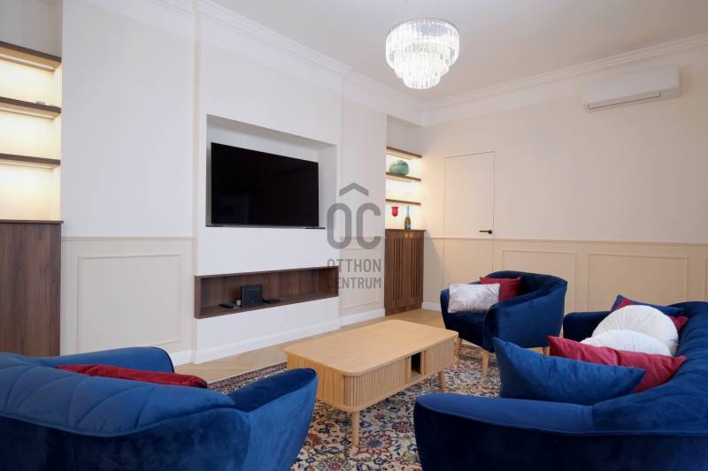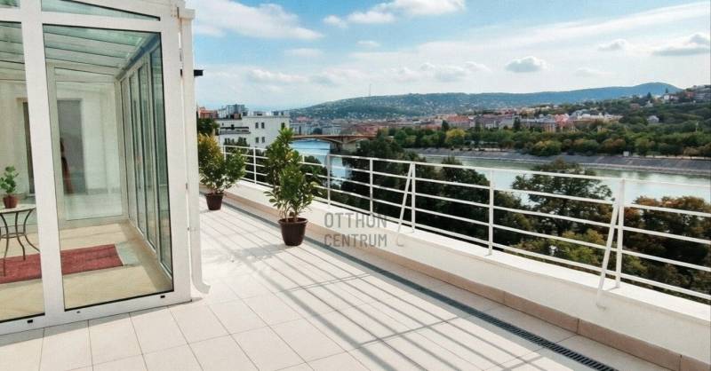 Penthouse a Szent István park felett – Margitsziget-panoráma, 50 m²-es tetőterasz, luxus Újlipótváros szívébenA 110 m²-es, belsőépítész által megálmodott otthon a kifinomult dizájn és a mindennapi kényelem kiegyensúlyozott elegyét kínálja. A lakás szíve az üvegfalú télikert-étkező, ahol télen-nyáron természetes fényben élvezheti a Dunára és a budai hegyekre nyíló kilátást.A tágas belső terek mellett hatalmas privát tetőterasz várja kültéri zuhannyal – ideális hely a város feletti pihenéshez. A lakásban 2 hálószoba, 2 fürdőszoba és egy nagy méretű nappali található, és válogatott prémium bútorokkal berendezett és gépesített. (A bútorok egy része a fotókon még nem látható.)– 110m² lakótér klimatizált üvegfalú télikert-étkezővel, 50m²-es tetőterasszal– Elsőrangú lokáció Újlipótvárosban a Pozsonyi út és a Szent István park mellett – Villamos: 4/6, trolibusz:75, 76, nem messze M3-as Metró, Nyugati Pu.-tol.– Örök panoráma a Szent István Parkra, a Margitszigetre és a budai hegyekre– Lifttel megközelíthető csendes legfelső szint - kerekesszékes használatra alkalmas– Prémium gépesítés, okostévé, okostelefonról vezérelhető klimatizálás és világítás– Távfelügyeletbe kötött riasztó, korszerű nyitás- és füstérzékelés– Parkolás közeli garázsban (bérlet része)– Otthonmenedzsment-asszisztencia (pl. tetőterasz ápolása) a bérlet része – takarítás igény szerintEz az ingatlan több mint lakás – életforma azoknak, akiknek fontos a tetőterasz és a télikert nyújtotta hangulat és a dunai horizont zavartalan látványa.Bérleti feltételekSzerződéskötéskor 2 havi kaució és 1 havi bérleti díj fizetendő.Minimum bérleti idő: 2026 július 31-igNemdohányzó ingatlan; szabadon mozgó kisállat nem hozhatóKözjegyzői okiratba foglalt kiköltözési nyilatkozatFelhívjuk figyelmét, hogy a képgaléria a lakás bútorozás előtti és utáni, berendezett állapotát is bemutatja, így a felvételek között eltérések tapasztalhatóak.