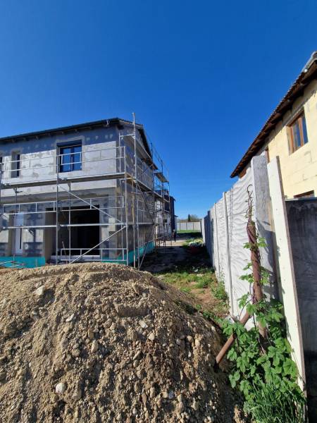 Eladó Két Szintes Ikerház Budapest XVIII. kerület, AlmáskertbenCím: 1188 Budapest, AlmáskertÁr: 139 900 000 FtAlapterület: 146 m2Szobák száma: 5Telek területe: 1300 m2 (min. 400 m2 privát rész lakásonként)Budapest egyik legkedveltebb, csendes és zöld övezetében, Almáskert részén kínáljuk eladásra ezt a két szintes, 146 m2-es bruttó, nettó 120.88m2 modern ikerházat új építésű házak szomszédságában, 1300 m2-es telken. Az ingatlan szigorú környezetvédelmi és energetikai elvárásoknak megfelelően épül!Amerikai-konyhás nappali (34,08 m2), közvetlen kertkapcsolat és 15 m2 terasz, 3-4 külön bejáratú hálószoba, 19,8m2 garázs hőszigetelt, elektromos kapu előkészítéssel, 2 fürdőszoba, erkély 2.11m2, erkély 6.61m2Egyedileg leválasztott, saját telekrész és privát kerítés-Modern levegő-víz hőszivattyú és padlófűtés, -Minőségi, választható burkolatok, szaniterek, beltéri ajtók- 2db klíma kerül felszerelésre-Minden ablak elektromos redőnnyel felszerelveBelső tartozékok, szaniter árak:-beltéri ajtó kilinccsel 80.000 Ft/db-kád tartozékaival 80.000 Ft/db-csap 20.000 Ft/db-mosdó 20.000 Ft/db-plusz víz csatorna kiállás kérésre 50.000 Ft/db-villanykiállás fejegységenként 30.000 Ft/db-Kerti csap ára kompletten szerelve: 100.000 Ft/db-elektromos tolókapu,-elektromos garázskapu,-napelem előkészítés,Kiváló, megbízható kivitelező, referencia házakkal a közvetlen közelbenVárható kezdés: 2025. szeptember, átadás: 2026. decemberAz ár a kulcsrakész állapotra vonatkozik! Ideális választás családoknak, akik tágas, modern, energiatakarékos otthont keresnek kiváló szomszédsággal.English versionFor Sale: Classic Semi-Detached Family House in District XVIII, Almáskert, BudapestAddress: 1188 Budapest, AlmáskertPrice: 139,900,000 HUFSize: 146 m2Number of rooms: 5Plot size: 1,300 m2 (min. 400 m2 private per unit)In one of Budapest\'s most popular, quiet, and green areas – Almáskert – this modern, newly built, classic two-storey, 146 m2 semi-detached house is for sale, on a spacious 1,300 m2 plot, surrounded by upscale new homes. The building will fully comply with the latest environmental and energy standards!Open-plan kitchen-living room (34.08 m2), direct garden connection and 15 m2 terrace3 separate bedrooms25.17 m2 insulated garage with electric gate preparation2 bathroomsPrivately fenced plot segment for each unitModern air-to-water heat pump with underfloor heating, plus 2 inverter A/C unitsHigh quality, customizable flooring, sanitary ware, interior doorsAlarm system preparationReliable, professional builder with reference houses nearbyConstruction start: September 2025, expected completion: December 2026The listed price is for fully finished, turnkey condition! An excellent choice for families seeking a spacious, modern, energy-efficient home in a premium neighbourhood with great community.