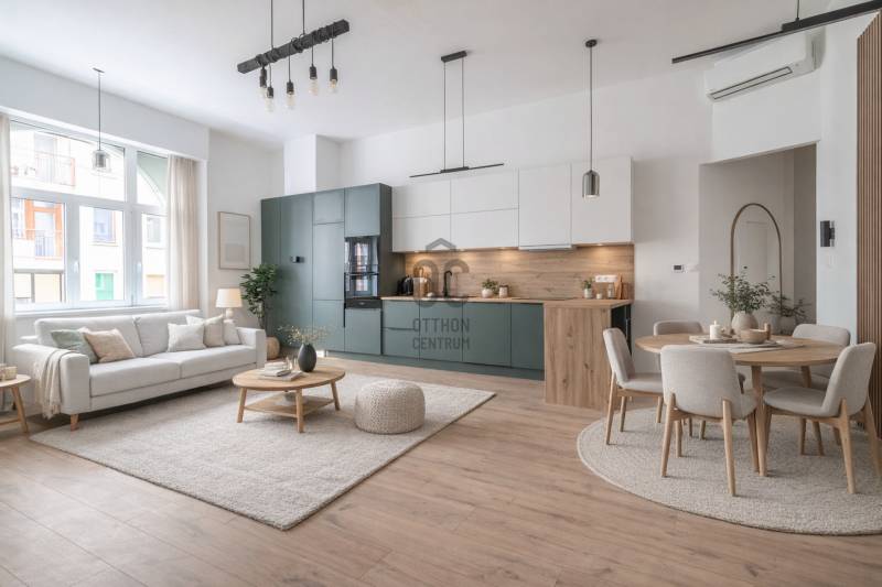 Budapest XIII. kerületében, Újlipótváros belvárosi részén található — Nyugati térhez, a Duna-parthoz és a Pozsonyi úthoz közel, eladásra kínálok egy Modern Okosotthont!Az ingatlan, Teljes körűen felújított, 1. emeleti, liftes, 3 szobás, Nettó 81 m²-es, prémium kivitelezésű.A folyamatosan karbantartott polgári házban lévő ingatlanban új elektromos- és vízvezetékek, háromrétegű nyílászárók, padlófűtés és okosotthon rendszer biztosítják a kényelmet. A belsőépítész által megálmodott dizájn, az egyedi gépesített konyha, valamint az igény szerint elérhető bútorzat modern, stílusos életteret kínál. A lakáshoz saját, zárható tároló is tartozik, és azonnal költözhető.Főbb jellemzők:• Teljes körű műszaki és esztétikai felújítás• Padlófűtés minden helyiségben• 3 rétegű, hő- és hangszigetelt nyílászárók• 1 db beépített Gree klíma• Okosotthon vezérlés: fűtés, világítás, redőnyök• Gépesített, egyedi tervezésű konyhabútor• Belsőépítész által megálmodott, alacsony energiaigényű lakás• Részben bútorozott, de kérésre teljes bútorzattal is elérhető (külön megállapodás kérdése)• Liftes ház, 1. emeleti lakásKiváló tömegközlekedés:A Lehel tér metró (M3) mindössze 7 percnyi sétára található.A környéken több buszjárat, köztük a 15-ös is közlekedik (Gogol utca megállónál)