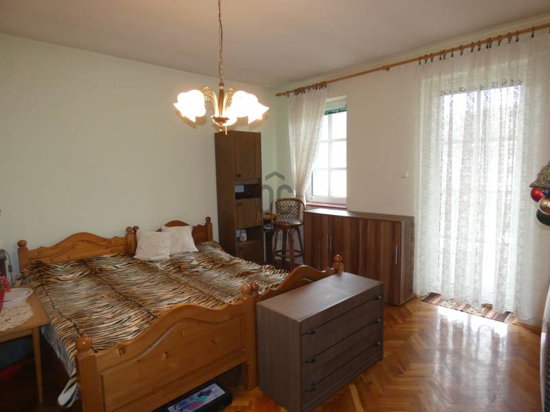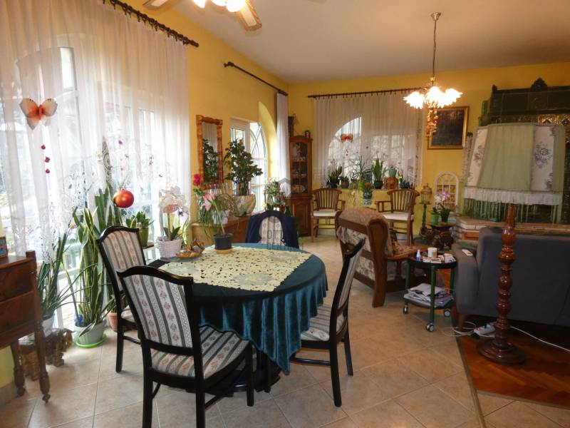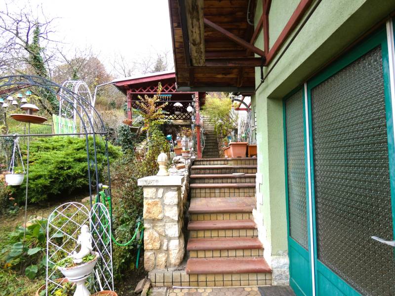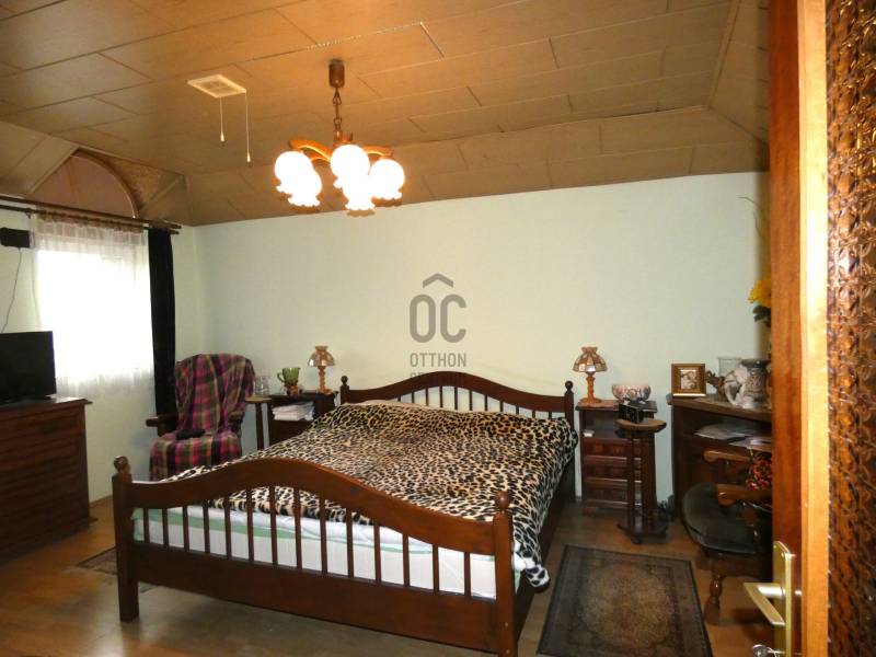 Pécs, ürögi rész elején eladó egy három szintes 2 generáció együttélésére alkalmas családi ház. A ház földszinti részén helyezkedik el a ház gépészeti berendezése, kamra, boltíves pince, egy beállásos garázs és egy vizes blokk zuhanyzóval. A felső szinten lévő lakások megközelíthetők a belső lépcsőházon keresztül vagy a külső lépcsősoron is. Az első szinten lévő lakás konyha, étkező kis nappali, hálószoba kialakítású. Itt kapott még helyet egy vendégszoba és két fürdőszoba és mosdó is. Mindkét szobához kapcsolódik terasz, amelyről szép kilátás nyílik a szembe lévő erdős részre. A közös előtérből egy lépcső vezet fel a 2. szinten lévő lakásba. Itt egy hatalmas nappaliba léphetünk be, amelynek benapozottságáról a nagy ablakok gondoskodnak. A nappaliban lévő kandalló nem csak hangulatot, de kellemes meleget is ad. A konyha átadó ablakon keresztül kapcsolódik az étkezőhöz. Félemeleti részen helyezkedik el a két hálószoba( egyik még befejezésre vár) gardrób, fürdőszoba és mosdó. A ház gépészete kiváló, fűtése gázcirkó, a hőleadás padló és falfűtéssel történik. 6 kw-os napelem, napkollektor, központi porszívó szolgálja a lakók kényelmét. A telken fúrt kút is található. A telek teraszos kialakítású, pergola - kiülő is található. A telek utcafronti részén több gépkocsi beállására is van lehetőség.