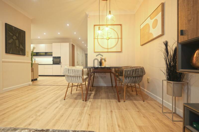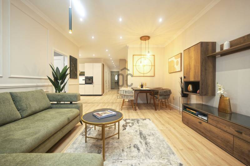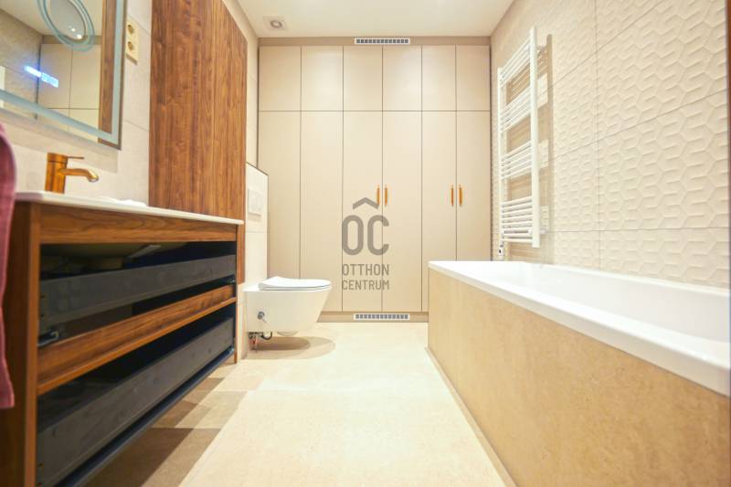 Prémium minőségben felújított 84 m²-es lakás Németvölgy szívében- Eladásra kínálunk egy teljes körűen, magas minőségben felújított, 84 m²-es lakást a kedvelt Németvölgyben, a Márvány utca Alkotás utca feletti szakaszán.- A liftes, kiváló állapotú épület első emeletén található lakás bejárata a frekventált, üzletekkel és közlekedéssel jól ellátott Márvány utcára nyílik, míg a lakás ablakai a csendes, zöld Hertelendy utcára tekintenek, délies tájolással.A lakás elrendezése és helyiségei- Tágas nappali–étkező (23 m²)- Különálló, mégis egybefüggő térélményt adó konyha (10 m²)- Két hálószoba:16 m² – déli fekvésű, a Hertelendy utcára néz11 m² – világos, növényekkel beültetett udvarra néz- Két fürdőszoba WC-vel- Tágas előszoba mennyezetig érő beépített gardróbbal- Külön gépészeti és tárolóhelyiség, mosó- és szárítógép számára előkészítve- A nappali, konyha és előtér közel 40 m²-es összefüggő teret alkotnak, amely rendkívül világos és tágas hatást biztosít.Műszaki tartalom és felújítás- Teljeskörű belső átalakítás: minden válaszfal cserélve- Erősített, hangszigetelt gipszkarton falak- Plusz hangszigetelés a főfalakon- Teljes mennyezeti álmenyezet hűtőpanelek integrálásával- Padlófűtés új, betonozott aljzattal- Daikin hőszivattyú a gazdaságos hűtéshez, fűtéshez és melegvízhez- Teljes elektromos és gépészeti hálózat csere- Villanyóra: 3×16 A- Gázóra: ideiglenesen leszerelve, igény esetén visszaköthető- Nyílászárók és árnyékolás- Új, hőszigetelt üvegezésű fa ablakok a Hertelendy utcai oldalon- Műanyag nyílászáró az udvari szobában- Prémium műanyag bejárati ajtó, acél merevítéssel és felülvilágítóval- Új, motoros redőnyök minden ablakon- Burkolatok, bútorzat és gépek- Prémium vízálló laminált padló a lakás teljes területén- Porcelanosa burkolatok, Hansgrohe szerelvények a fürdőkben- Egyedi gyártású előszoba- és konyhabútorok minőségi vasalatokkal- Beépített Bosch konyhagépek:182 cm magas hűtő-fagyasztómosogatógépkerámia főzőlapsütőpáraelszívó- 3 méter széles beépített gardrób a nagyobb hálószobábanA lakás a kisszoba kivételével minőségi német bútorokkal berendezett, amelyek a vételár részét képezik (igény esetén jóváírhatók)A társasház állapota és költségei- A társasház pénzügyei rendezettek- A tető szigetelése és a villamos hálózat felújítása 2024-ben történt meg- Közös költség 2025.07.01-től: 35 450 FtHa bármi kérdése még lenne, kérem hívjon. A megtekintésre pedig találunk időpontot. Várom a hívását.