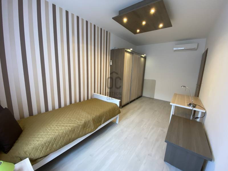 A Corvin sétány egyik igényes, modern társasházában, a 6. emeleten eladó egy 65 m²-es, nappali + 2 külön nyíló hálószobás, kiváló állapotú lakás, 11 m²-es, valóban használható erkéllyel, csendes, belső kertre néző tájolással.Ha a munkádban már elég a projektekből, határidőkből és döntési kényszerekből, akkor a lakáskeresésnél valószínűleg nem erre vágysz. Nem felújításra, nem bútorozásra, nem „majd egyszer kész lesz” megoldásokra.Ha így van, akkor jó helyen jársz: ez egy kész, prémium élethelyzet.Itt minden adott ahhoz, hogy egyszerűen csak megérkezz és élj.Amit ez a lakás nyújt:•igényes, modern társasház, szép, tágas közös terekkel•nappali + 2 külön nyíló, ablakos hálószoba•külön fürdőszoba és külön WC•teljes bútorzattal eladó – azonnal költözhető•nagy méretű, nem keskeny erkély, ahol az étkezőasztal kényelmesen körbeülhető•hatodik emelet, világos terek, kertre néző kilátás•házközponti fűtés egyedi mérőkkel, hőszivattyús rendszer•alacsony rezsi•lakójellegű, rendezett társasház, ahol alapvetően hosszútávra tervező bérlők és tulajdonosok élnek•több külföldi lakó is él a házban – csendes, kulturált, nemzetközi közeg, amelyet sokan kifejezetten értékelnek a Corvin sétány pezsgése mellett.Parkolás – a mindennapok kényelmeA lakáshoz két teremgarázs tartozik, amelyek (a kettő együtt) 26 MFt-ba kerülnek. Ezek a lakással együtt, egységes csomagként kerülnek értékesítésre. A garázs itt nem extra, hanem az életminőség része.Itt nincs utcán körözés, nincs „majd találok valahol helyet”.Hazajössz, legurulsz a mélygarázsba, és beállsz a saját, jól megszokott helyedre – ez a fajta nyugalom a városi életminőség része.Ez az ingatlan azoknak szól, akik pont egy ilyen prémium csomagot keresnek:kész állapotot, átgondolt alaprajzot, nyugalmat, kényelmet és kiszámíthatóságot a város egyik legjobb lokációjában.Megtekintés egyeztetéséhez kérem hívjon telefonon!