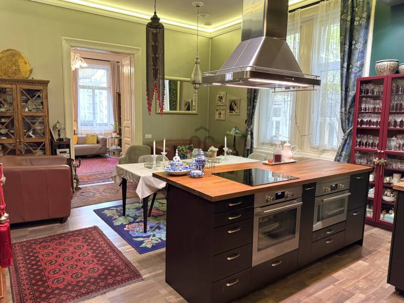 A város egyik legkarakteresebb, századfordulós palotájában kínáljuk megvételre ezt a kivételes hangulatú, több mint százéves építészeti részleteket megőrző, tágas terekkel rendelkező műtermi lakást. Az ingatlan igazi kuriózum: a felső szinten kapott helyet a ház eredeti műterme, amely óriási belmagasságával és monumentális ablakfelületeivel páratlan fényt és atmoszférát biztosít. A napfény gyönyörűen járja be a teret, így alkotói munkához és nagyvonalú nappaliként is tökéletes.LAKÁS - 2. emelet, 195 m² nettó alapterület + 2 db utcai nézetű erkély - Belső kétszintes, a felső szinten található a 48 m²-es műterem monumentális ablakokkal és kiváló fényviszonyokkal- Az alsó szint alapterülete 116m², ezen a szinten található az amerikai konyhás nappali és további 3 szoba + 2 fürdőszoba+WC, továbbá kamra és egyéb helyiségek- Alsó szint belmagassága: 3,9m- Műterem belmagassága: 5,1m- A lakás 2018-ban gépészeti felújításon esett át, minden vezeték és a fűtésrendszer korszerűsítve lett- Közös költség: 53.625 HUF/hó - Fűtése: egyedi cirkó gázfűtés TÁRSASHÁZ- 1898-ban építették eklektikus stílusban, a lakás a villatulajdonos saját lakrésze volt- Eredetileg elegáns panziónak épült, egészen az 1930-as évekig fogadta a vendégeket- A tégla építésű társasház lift nélküli, 14 lakásos- A felújítási - és karbantartási munkálatok rendszeresek, a lakóközösség kultúráltAmennyiben további információra van szüksége, vagy megtekintené az ingatlant, várom hívását, kérem, keressen bizalommal!