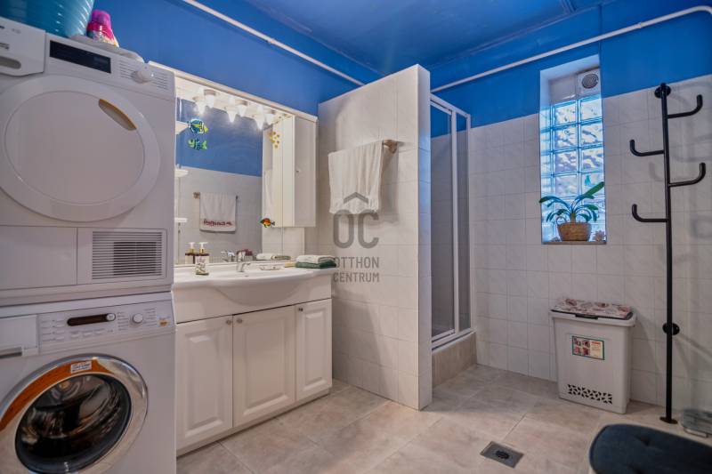 Ha olyan házat keresel, ahová tényleg csak be kell költözni, és ahol minden a helyén van, akkor ezt érdemes megnézned.Pestújhely egyik legcsendesebb, legkedveltebb kertvárosi részén, a Petrence utcában kínálunk eladásra egy két szinten összesen 189 m²-es, teljes körűen felújított, kiemelkedő műszaki és esztétikai színvonalú családi házat.Ez nem egy „jó adottságú ingatlan”, hanem egy átgondolt, élhető otthon, ahol a kényelem, a praktikum és az elegáns részletek természetesen simulnak össze.Terek, ahol jó lenniA világos, tágas helyiségek és a minőségi anyagok az első pillanattól érezhetők.A földszint szíve az egyedi tervezésű könyvtárszoba – ideális esti beszélgetésekhez, családi együttlétekhez vagy egyszerűen elvonuláshoz.A két, teljesen külön működő lakószintnek köszönhetően a ház tökéletesen alkalmas két generáció harmonikus együttélésére, vagy akár munkavégzés és privát élet kényelmes elkülönítésére, így kiváló:•két generáció együttélésére,•vagy lakás + iroda / vállalkozás elkülönítésére,•esetleg nagyobb család számára is.Amit ritkán kapsz egyben•6 szoba•2 önálló konyha•2 fürdőszoba + külön vendég-WC•Tömör bükk beltéri ajtók, tölgy parketta, spanyol kőporcelán burkolatok•Daikin klímarendszer, kondenzációs gázkazán•Napkollektoros melegvíz-ellátás•Finn relax szauna és Wellis gőzkabin – valódi otthoni wellness•Riasztó- és kamerarendszer, optikai internet•15 m²-es, árnyékolt teraszA kertAz 526 m²-es, gondosan karbantartott kertben 13 termő gyümölcsfa, bogyós gyümölcsök kaptak helyet. Mobilról vezérelhető, fúrt kútra kötött okos öntözőrendszer gondoskodik arról, hogy a kert minden évszakban a legszebb arcát mutassa.A tágas, 27 m²-es garázs elektromos Hörmann kapuval és a hozzá tartozó tároló épület tovább növeli a mindennapi kényelmet.Elhelyezkedés – ahol a nyugalom és a közlekedés találkozikA ház Pestújhely egyik legkellemesebb részén áll: csendes, nyugodt, családias környezetben, ugyanakkor néhány percre a busz- és villamosmegállótól, az M3 bevezetőtől és a Szentmihályi úttól.Innen a belváros és az elővárosok is gyorsan elérhetők – kompromisszumok nélkül.EnergetikaAz épület C energiabesorolása és a korszerű gépészet kivételesen alacsony fenntartási költséget garantál, így a teljes rezsi mindössze 32.000 Ft havonta.Jogi háttér Beköltözésre készen, hiszen az ingatlan per-, igény- és tehermentes, a beépített bútorok az ár részét képezik, a mozdítható berendezés pedig igény szerint megvásárolható.Kinek ideális?Annak, aki minőséget keres, nem felújítandó projektet.Aki hosszú távra gondolkodik.Akinek fontos a nyugalom, a tér és az, hogy a ház valóban kiszolgálja a mindennapokat.Ez a ház nem akar többnek látszani, mint ami – csak nagyon jól működik.Ez az ingatlan a \"Hűség csomag\" megbízási portfólióhoz tartozik. Részletek az Otthon Centrum weboldalán.