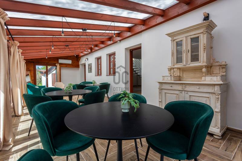 A Balaton északi partján, a Káli-medence egyik legbájosabb településén kínálunk megvételre egy teljes körűen felújított, két szinten elhelyezkedő, szálláshely üzemeltetésére kiválóan alkalmas ingatlant.Az ingatlan lakóház besorolású, de kialakítása és felszereltsége révén már jelenleg is vendégházként üzemel, így az új tulajdonos akár azonnal folytathatja a működtetését.Telek terület: 1460 m²Alapterület: 221 m²Szobák száma: 7Fürdőszobák száma: 5JELLEMZŐK ÉS ELRENDEZÉS – vendégfogadásra optimalizálvaFöldszint: Első lakóegység: gépesített, tágas konyha-étkező, hálószoba, fürdőszoba, külön mosókonyha/tároló Fedett télikert: világos közösségi tér nagy üvegfelületekkel – ideális reggeliztetéshez vagy vendégrendezvényekhez További helyiségek: közös használatú konyha, szoba, fürdőszoba, gépészeti helyiség, közlekedőEmelet: 3 külön bejáratú vendégszoba, mindegyik saját fürdőszobával és WC-vel Tágas közlekedő/közösségi térModern felszereltség, alacsony üzemeltetési költség Elektromos padlófűtés + hőtárolós melegvíz rendszer Hűtő-fűtő klíma Kályha az első lakóegységben Napelemrendszer 3×32 A áramerősség 12 cm külső hőszigetelés Hőszigetelt fa nyílászárók Cserépfedésű, szigetelt tetőVendégcsalogató külső környezet: Elektromos kapu, térkövezett előudvar Gondozott, parkosított hátsó kert: kerti tó, gyümölcsfák, füves pihenőrész Szauna és kültéri dézsafürdő a vendégek kényelméért Minőségi bútorok, napernyők, nyugágyak, hinta és kerti garnitúrák az udvaronKiváló befektetés – Azonnal működtethető turisztikai egységEz az ingatlan nem csupán egy lehetséges otthon – egy kész vendéglátóhely, ahol az új tulajdonos egy jövedelmező családi vállalkozást vihet tovább. A Balaton és a Káli-medence folyamatos turisztikai vonzereje garantálja a szezonon túli kihasználtságot is.Vegye fel velünk a kapcsolatot még ma – ragadja meg ezt az egyedülálló lehetőséget!Ideális választás magánszemélyeknek, befektetőknek, de akár cégek számára is üdülőként vagy prémium vendégházként.