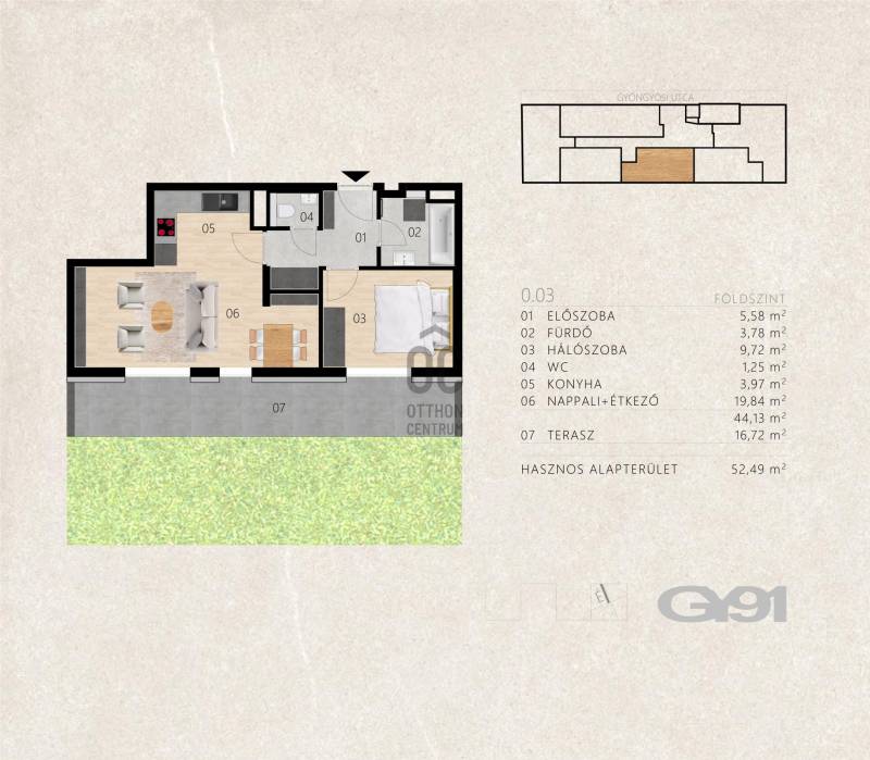 Projekt bemutatásaProjekt áttekintésKiváló befektetési és lakhatási lehetőség Budapesten, a XIII. kerület frekventált, de nyugodt részén. Itt épül egy modern 31 lakásos, pince + földszint + 4 emelet kialakítású, elegáns, liftes társasház!Műszaki szempontból is a legmodernebb megoldásokat alkalmazzák az építés során, hiszen hőszivattyús fűtés és melegvíz ellátása van a lakásoknak, amihez párosulnak a három rétegű ablakok, és a megfelelő homlokzati szigetelés. Ezáltal a lakások fenntartási költsége nagyon kedvező lesz!A földszinti lakások egy része kertkapcsolattal rendelkezik, amely ideális választás lehet azoknak a vevőknek, akik kisállattal rendelkeznek vagy zöld környezetre vágynakKiemelt figyelmet érdemel a lakóépület legfelső, negyedik emelete, ahol az utcai és udvari homlokzati falak visszahúzása miatt:Tágas, napfényes teraszok kerülnek kialakításra.Penthouse jellegű lakások, melyek ideálisak a különleges hangulatot és kilátást keresők számára.Lehetőség van garázs beálló hely vásárlására a mélygarázsban, illetve tároló vásárlására is. Ha akezdeti szakaszban vásárol, akkor még lehetősége van a saját ízlése szerint kiválasztani a burkolatokat, ajtókat, szanitereket stb. ElhelyezkedésA Gyöngyösi utca kiváló infrastruktúrával rendelkezik, a közelben minden megtalálható, ami a kényelmes élethez szükséges (vásárlási lehetőségek, közlekedés, szolgáltatások).Ne maradjon le! Válassza ki álmai otthonát még az építkezés kezdeti szakaszában!További információkért keressen minket bizalommal!