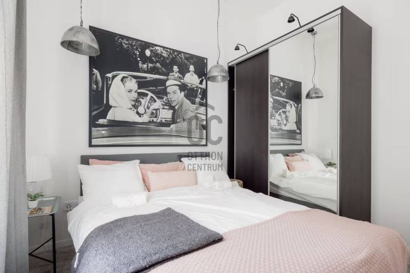 Kiadásra kínálok a VI. ker belső részének nyugodt utcájában egy nagyon szép és igen impozáns teljesen felújított belső és külső homlokzatú társasházban található 52 nm -es, remek alaprajzú N+ 2 hálós igényesen műszakilag és esztétikailag is teljesen felújított ingatlant, teljes bútorzattal együtt.Lássuk a részleteket:A VI. ker. belső részén, egyenlő távra az Andrássy úttól, az Oktogontól vagy a nyüzsgő VI. és VII. kerület határát is jelentő Király utcától egy kis nyugodt egyirányú utcában található az ingatlan.A klasszikus polgári épület külső homlokzata teljesen felújított - tükrözi a régi értékeket. Az épületbe lépve rendezettség fogad. A belső homlokzat és a kapuszín szintén felújított. A lakás a társasház II. emeletén található ide vagy lifttel vagy a szép szintén impozáns lépcsőházban jutunk fel.Az ingatlan teljes műszaki felújításon esett át ( ez magában foglalt mindent ) - a fotók magukért beszélnek!A lakásban egy kellemes méretű amerikai konyhás nappali kapott helyet, illetve egy kisebb és egy nagyobb hálószoba. Az egyik hálóhoz az alaprajzon is látható módon egy kis aranyos gardrób is tartozik. A beérkezésnél elég a tér, és itt is világos a lakás. Van elég hely lepakolni, megérkezni. Az amerikai konyhás nappali utcára néz, de mivel az utca csak egyirányú nagyon csendes. A képeken is látható, hogy gépesített konyha ( mikró, sütő, elszívó, főzőlap, mosogatógép stb. ) . A kellemes méretű nappaliban kis étkező, pihenő sarok és nappali rész lett kialakítva. Innen nyílik a nagy háló, melyben nagy méretű világítással is felszerelt gardrób szekrény kapott helyet. A fürdő is minden igényt kielégít - végre nem kell dönteni, hogy kád vagy zuhany, ugyanis mindkettő van! Kézmosó, mosógép és törölközőszárító is kellemesen elfér itt. A WC külön van a fürdőtől.Az ingatlan fenntartása nagyon kedvező.Az ingatlant egyedi, gáz cirkó kazán fűti, a hidegről klíma gondoskodik, gázóra, vízóra és villanyóra is van. A kktg. 21.415 Ft.A lakáshoz tartozik a pincében egy önálló tároló, mely 6 m2.Várom hívását, rugalmasan megtekinthető nagyon szép ingatlan. Keressen nyugodtan!