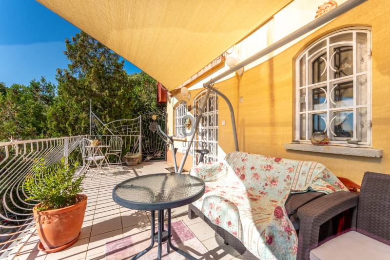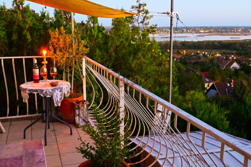 Panorámás ház óriási terasszal és mediterrán kerttel - Velencén, a Bence-hegyen, egy lakás áráért.Télen bekuckózni, nyáron a teraszon élni, egész évben csend, szemet-lelket nyugtató 180 fokos panoráma.A Velencei-tó közvetlen közelében, a festői Bence-hegyen kínálunk eladásra egy gyöngyszemet, második tulajdonostól. Építész család építette magának 1995-ben, majd 8 éve teljes felújítás-átalakítás történt, így nyerte el az ingatlan mai, egyedi formáját. Egész éves lakhatásra alkalmas, fűthető. Összközműves.A ház parádés kilátással rendelkezik a Velencei-tóra és a Velence-Sukoró közti völgy minden szegletére. A teraszon állva elmélázhatunk, hogy az egyes házakban milyen lehet élni, a kertjeikben milyen szép fák vannak, a szőlősorok hú, mennyi munkát adhatnak a művelőjüknek, vagy szemünket nyugtathatjuk a képet szegélyező erdősávon. Látjuk, de mégis diszkrét, érezzük, hogy távol vagyunk, fent, a magasban. És a tó... a csillanó vízzel, a nádszigetekkel, a vitorlásokkal...Az amerikai konyhás nappalihoz egy tágas terasz tartozik, mely nyári estéken a pihenést, felüdülést szolgálja, a többi évszakban pedig napfényes, kellemesen meleg a déli lejtőnek köszönhetően - még napozni is lehet télen!A felső lakószinten a hálószoba kapott helyet és egy kádas fürdőszoba. A szobához egy loggia kapcsolódik, ami csak fokozza a látványt, sőt, az ide tett szófán aludni olyasmi élmény lehet, amit a sziklamászók meg a szirti sasok élhetnek meg - természetesen teljes biztonságban, a legurulás veszélye nélkül.Az ingatlan főbb jellemzői címszavakban:- az utcaszinten fedett kocsibeálló- lefelé 66 lépcsőfok (felfelé is... fitten tart!)- mediterrán kert: levendula, rozmaring, fenyő... olajfa, leander, citromfa... és hozzá a kabócák éneke- két szintes lakótér- panoráma az ágyból is (nem túlzás!)- intim terek és teraszok belátás nélkül- belmagasság: 230 cm- legalul egy tároló- tervezett kert: pihenő- és nyugizóhelyek- rézsűs teraszosított telek tavaszi hagymásokkal, mediterrán növényzettel- elvonulásra alkalmas kerti terek jógázni, relaxálni, felhőt nézni- látkép a Velence és Sukoró közti völgyre, családi házas telkekre, balra a Velencei-tóra, jobbra a beépítési határ felett ívelő erdőre- autópálya kapcsolat: 7 percre (1,5 km)- csendesKözművek:- vezetékes víz- áram- gáz- csatorna (átemelővel a terep miatt, a szomszédos telekkel közös csatornavezetés szolgalmi joggal)További információkért és megtekintési időpontért hívjon bizalommal a hét bármely napján!Ha ingatlant szeretne eladni, abban is együttműködöm Önnel.Amennyiben hitelre van szüksége, az Otthon Centrum az ország egyik legnagyobb és legmegbízhatóbb hitelközvetítőjeként, teljes körű és díjmentes hitel ügyintézéssel áll rendelkezésére.Kérje személyre szabott ajánlatunkat!iVelence, panoráma, mediterrán, ház, csend, eladóEz az ingatlan a \"Felező csomag\" megbízási portfólióhoz tartozik. Részletek az Otthon Centrum weboldalán.