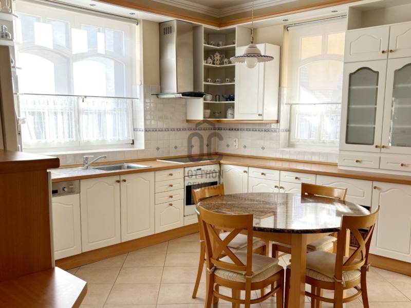Baján, rendezett, családi házas övezetben, a város főterétől mindössze pár percnyi sétára kínálunk megvételre egy 543 nm-es telken, 1997-ben, saját részre épült, magas műszaki tartalommal és kimagasló minőségben kivitelezett családi házat.Az ingatlan Ytong falazattal, betongerendás, béléstestes födémmel, valamint hódfarkú cserépfedéssel épült. A külső és belső nyílászárók egyedi tervezésűek: a homlokzati fa ablakok kétrétegű üvegezéssel, a belső ajtók pedig tömör fából, ólomüvegezéssel készültek.A 188 nm-es lakótér rendkívül jól átgondolt elrendezésű:három külön nyíló hálószoba, intarziás parkettával burkolt nappali, étkező, teraszkapcsolatos konyha, bútorozott kamra, mosókonyha kényelmes padlásfeljáróval, valamint egy tágas fürdőszoba (zuhanyzóval, masszázsfunkciós sarokkáddal, WC-vel és bidével), továbbá egy külön WC–kézmosó kapott helyet.A fűtést kombi gázkazán biztosítja padlófűtéssel és lapradiátorokkal, kiegészítve egy fatüzelésű cserépkályhával. A hálószobák radiátoros fűtésűek és padlószőnyeggel burkoltak, a többi helyiség kerámialapos, padlófűtéses. A meleg vizet két villanybojler, a komfortot pedig nagy teljesítményű klímaberendezés és riasztórendszer szolgálja. Az ingatlan összközműves, 3×20 A elektromos kapacitással rendelkezik.A ház alatt egy 90 nm-es, angolaknás, szigetelt pince található, több tárolóval és külön konyhával – kiváló lehetőség hobby-, vendég- vagy akár vállalkozási célokra is.A gondozott kertben fedett autóbeálló és garázs (külön-külön egy autó számára), pázsitos udvar, díszkert, hangulatvilágítás, kerti csap, bográcsozó, és a kikapcsolódáshoz két fedett terasz került kialakításra.A környék rendezett, ingyenes parkolással és kiváló megközelíthetőséggel. A környéken minden fontos intézmény és szolgáltatás rövid sétatávolságon belül elérhető: üzletek, hivatalok, iskola, orvosi rendelő, patika, éttermek, kávézók...Az ingatlan tehermentes, térképészetileg rendezett és rövid határidővel birtokba vehető.A bútorzat külön megállapodás tárgyát képezheti.Ez az otthon ideális választás mindazok számára, akik minőségi kivitelezésű, időtálló, belvárosközeli családi házat keresnek nyugodt környezetben.Megtekintésért és további információért keressen bizalommal!