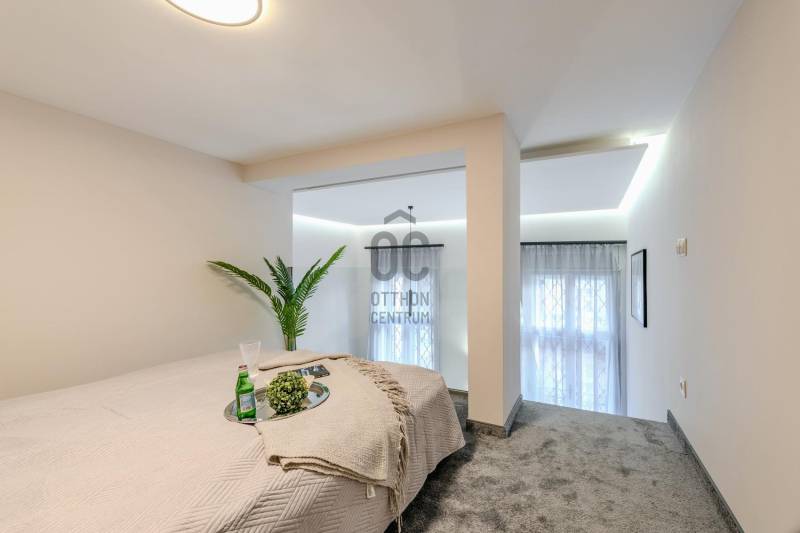 Budapest, XIII. kerület, Szent István Körúton eladó egy stílusos és modern lakás. Az ingatlan a város egyik keresett környékén található, kiváló közlekedési lehetőségekkel és számos kényelmi szolgáltatással a közelben.Ingatlan jellemzői:-Elhelyezkedés: Budapest, XIII. kerület, Szent István Körút-Ház típusa: „Budapest100” épület-A négyemeletes épület kétszárnyú, díszes kovácsolt vas kapuján belépve két nagy méretű lámpára és a keresztboltozatos mennyezet díszes festésére leszünk figyelmesek. Az ornamentikus festésű falfelületeket rozettás sávok választják el egymástól. Balra a liftet, jobbra pedig a főlépcsőház bejáratát találjuk.-Kialakítás: Tágas nappali, 2 hálószoba-Konyha és fürdőszoba: Teljesen felszerelt és modern-Egyéb jellemzők: Kiváló állapot, frissen felújítvaLakás részletei:-Az elegáns minőségi anyagokkal kiépített nappali tágas és világos, modern bútorokkal berendezve, ideális helyszín a pihenésre és szórakozásra.-Két hálószoba kényelmes elrendezéssel rendelkezik, alkalmas családok, párok vagy akár home office kialakítására.-A konyha teljesen felszerelt, modern konyhabútorokkal és kiváló minőségű készülékekkel. Bosch beépített gépek-A fürdőszoba stílusos és praktikus, Arezzo Design prémium szaniterekkel és csempékkel.-Az ingatlan frissen felújított, így az új tulajdonosnak csak beköltöznie kell.-Szülői háló elegáns egyedi beépített „en suite” gardróbé és design zuhannyal felszerelt fürdővel.-A vendégszoba egyedi galériával alatta elegáns „en suite” fürdővel kialakított.Környék és Infrastruktúra:-A XIII. kerület kiváló infrastruktúrával rendelkezik, számos étterem, üzlet és szolgáltatás található a közelben.-A tömegközlekedés kiváló, a metróállomások, busz- és villamosmegállók könnyen elérhetők.-Az ingatlan közelében iskolák, óvodák és parkok is megtalálhatók.A ház mögötti utcában teremgarázs hely bérelhető!Ha modern és kényelmes lakásra vágyik Budapest egyik népszerű környékén, akkor ez az ingatlan Önnek lehet ideális választás. Kérjük, vegye fel velünk a kapcsolatot további információkért vagy időpont egyeztetés céljából.